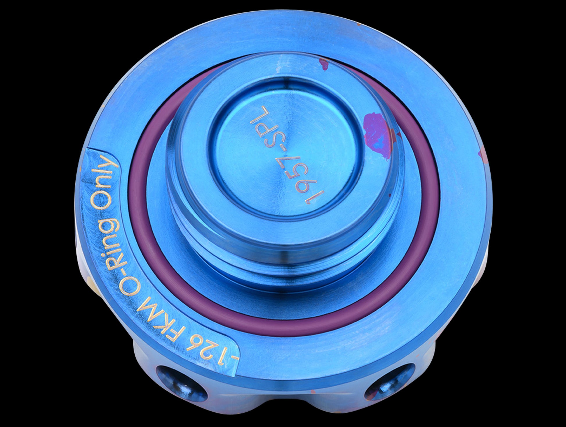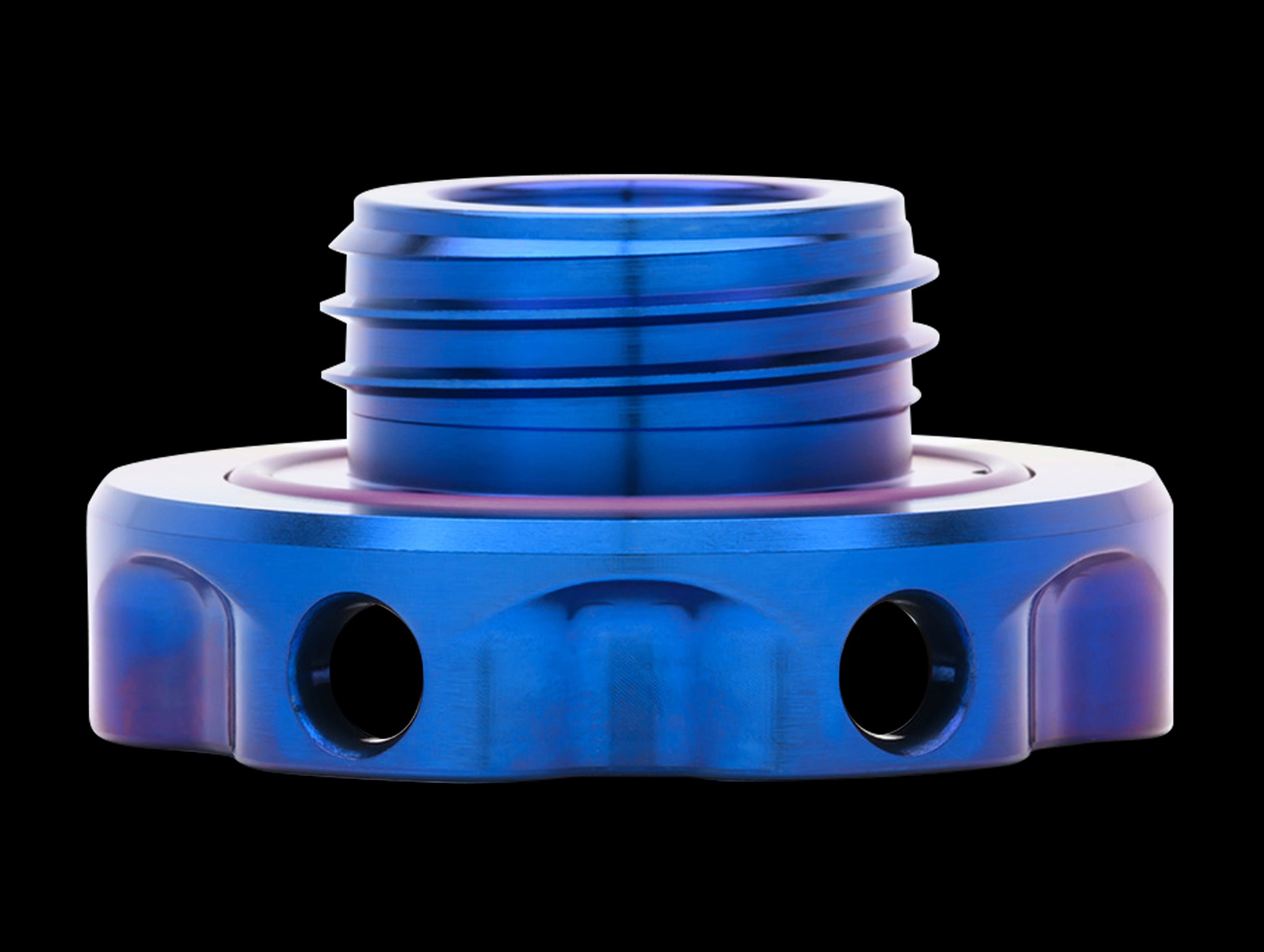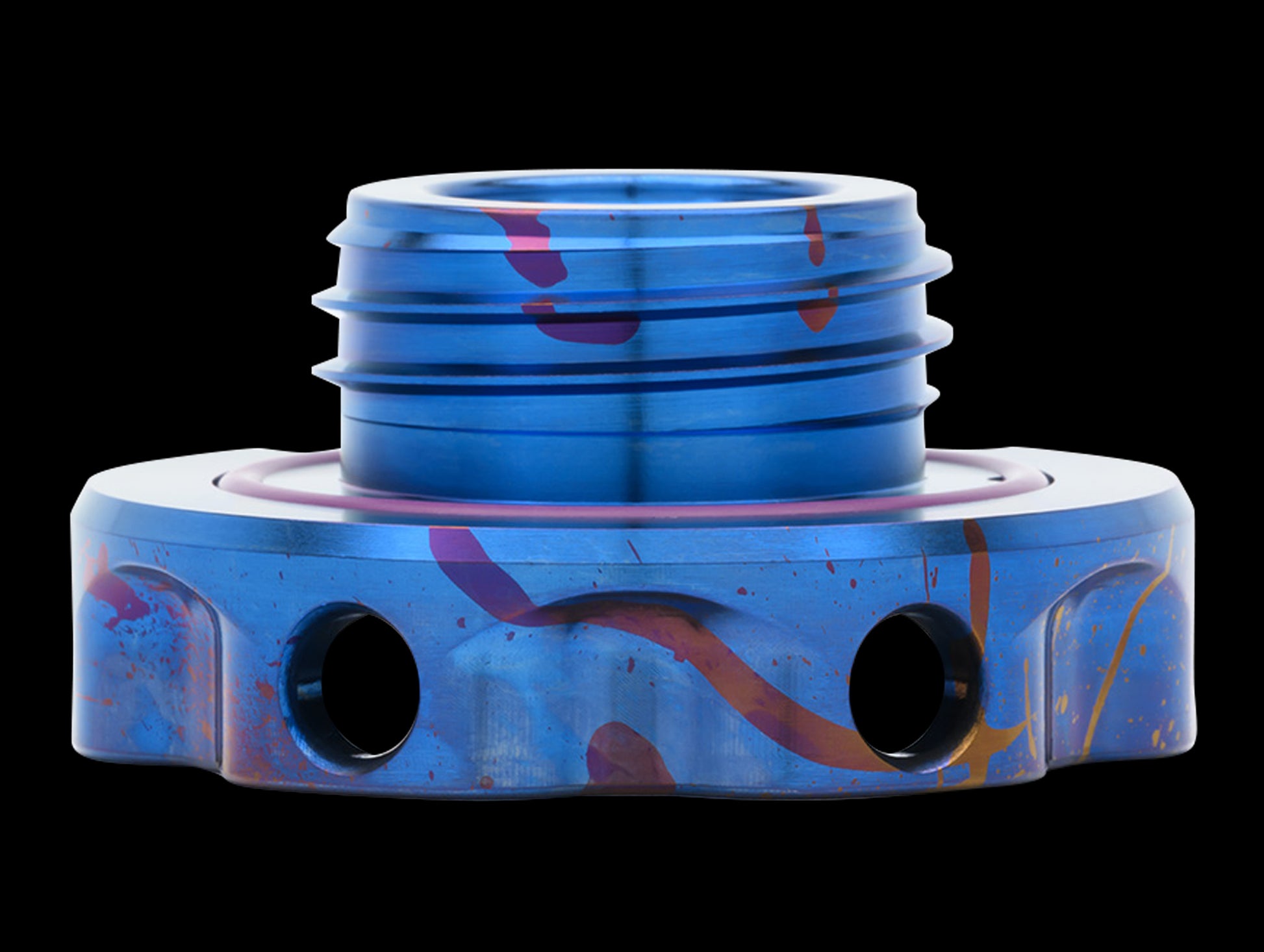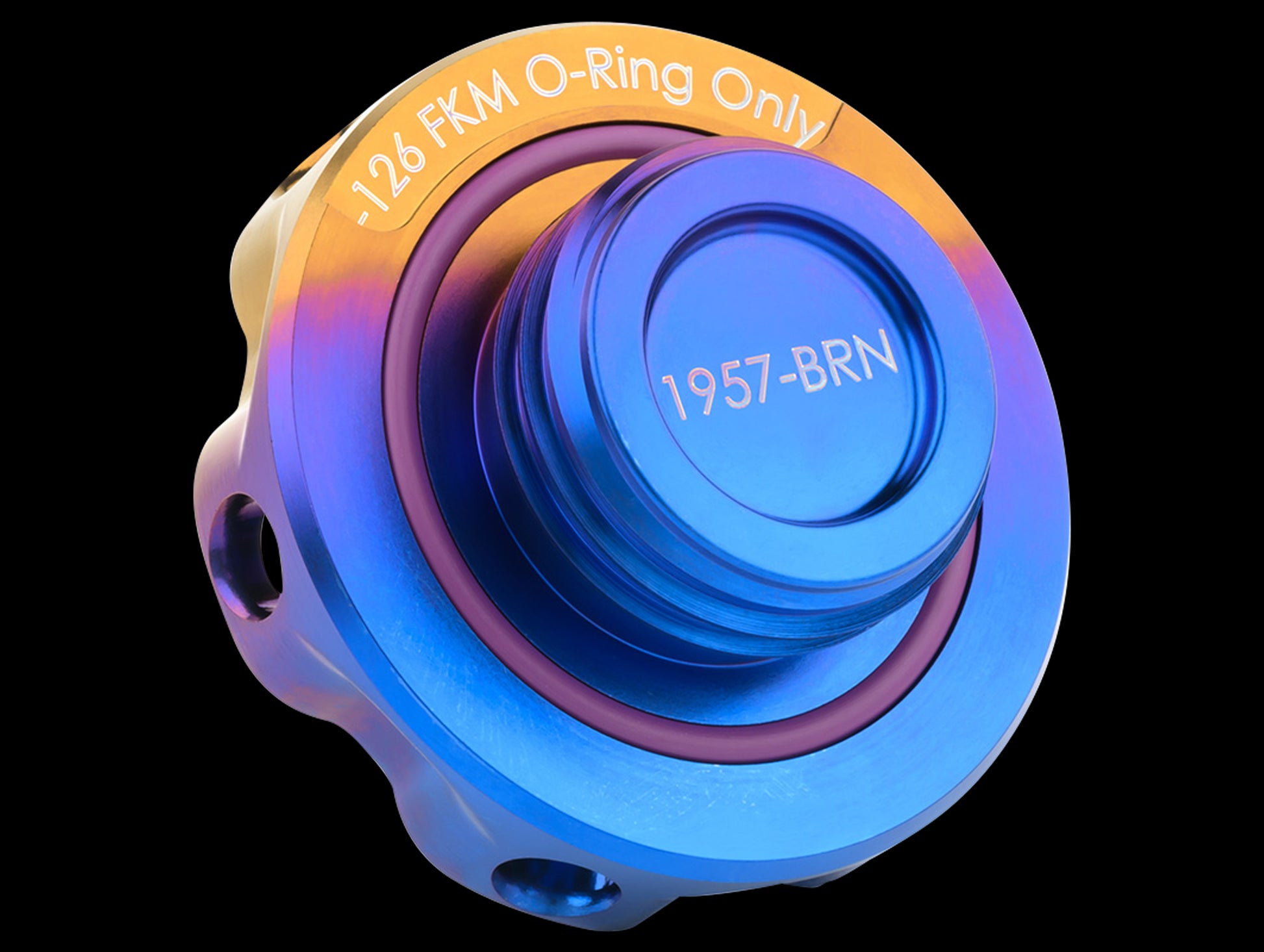 The Podium-Ti Oil Cap by ACUiTY is meant to shine when others would leave you in a literal bind. Most gearheads have struggled to remove a stuck oil cap at some point. The Podium-Ti gracefully avoids such issues thanks to its cross-drilled holes and machined hex that allow removal using a screwdriver or socket. Of course, it also permits hand removal using its gently scalloped profile. The Podium-Ti is carefully machined from 6AL4V titanium, and the finish is applied by hand, making every piece unique. Attention to detail abounds in this design with subtle features like a dovetailed o-ring retention groove, helpful technical markings, and critically placed fillets to help keep the oil cap looking great even after repeated loosening using tools. With its titanium construction, beautiful finish, artful design, and surprisingly light weight, it's clear the Podium-Ti is meant to be more than just a beautiful addition to your race car.