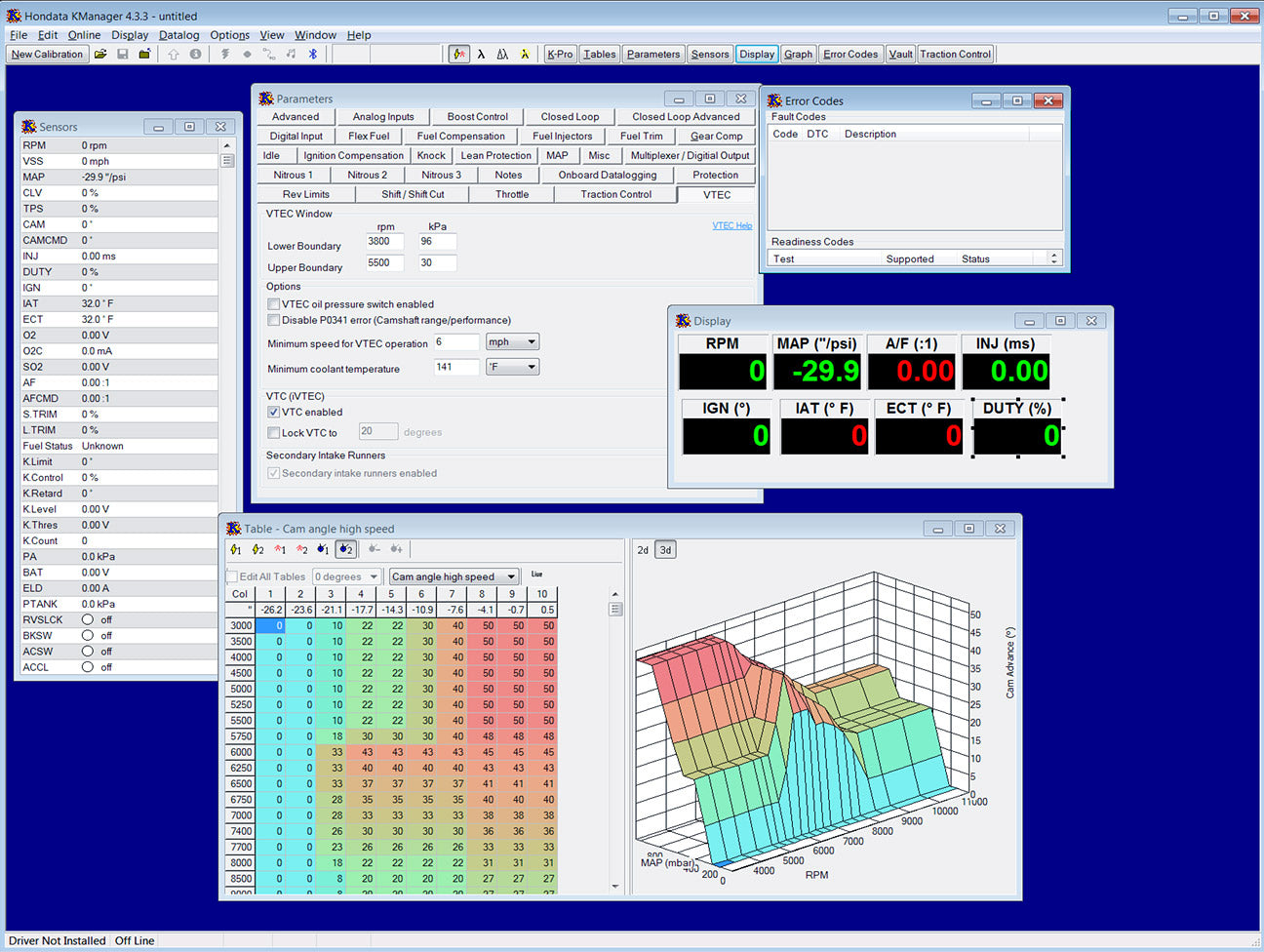 - High and low speed 16 x 20 ignition and fuel tables for correct VTEC tuning