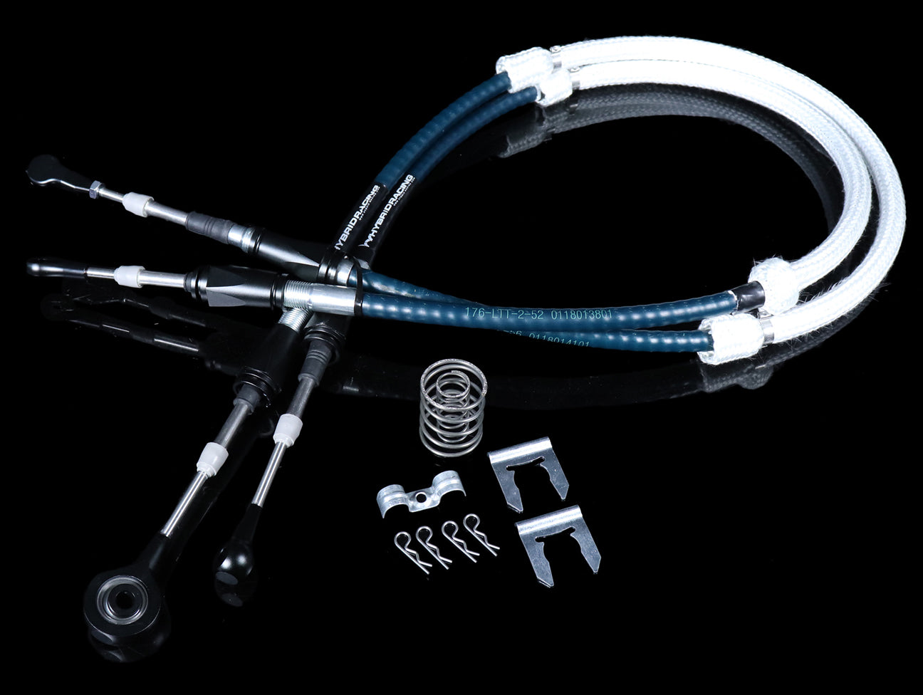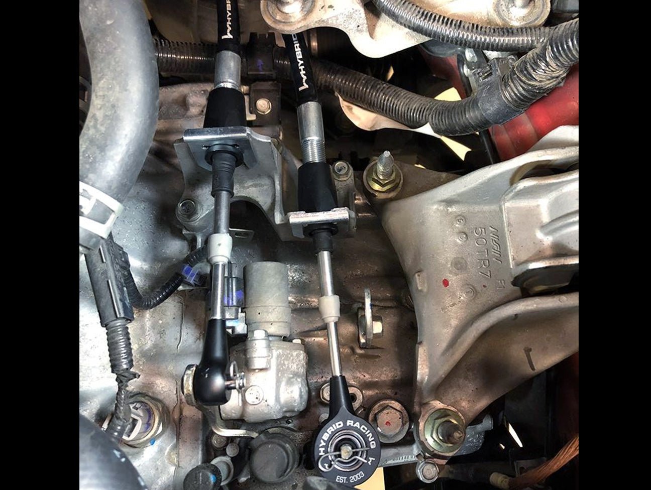 The Hybrid Racing cables are a performance upgrade replacement for stock OEM cables. The solid rod ends, 30% thicker cable core and spherical bearings give the Hybrid Racing cables a firmer, tighter feel over OEM cables resulting in fewer missed shifts and a more connected feel to the chassis.