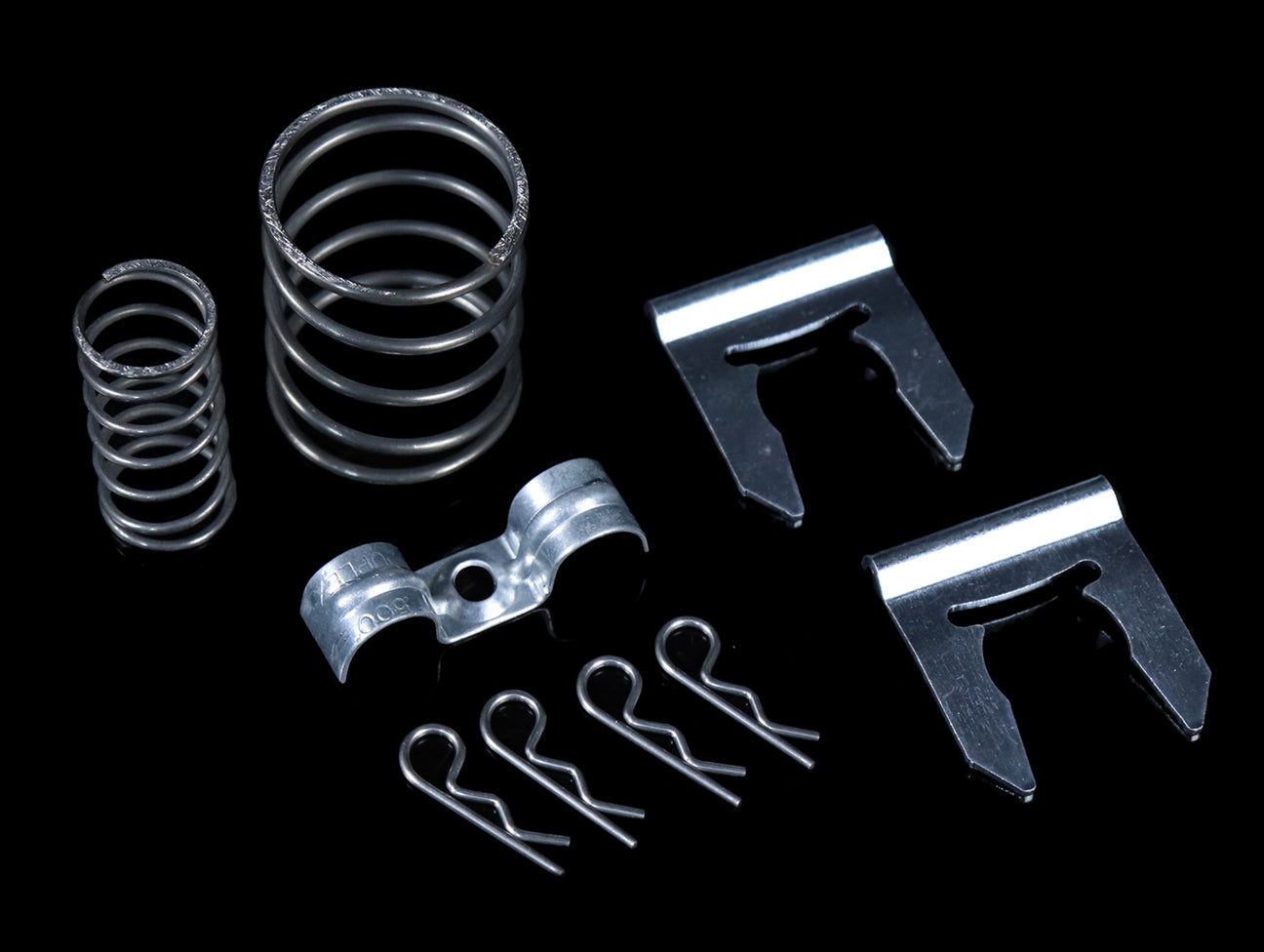 The kit comes with two shifter cables; each shifter cable set includes two cotter pins, clips for the shifter end, and transmission selector lever springs. The upgraded gear selector springs aren't required but are recommended to further improve the feel of your gear changes