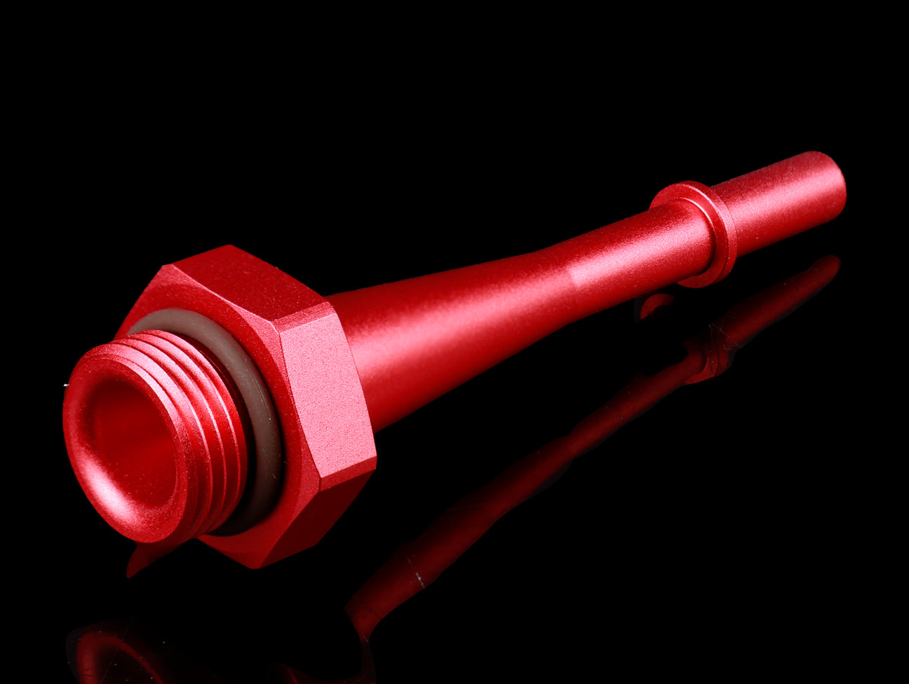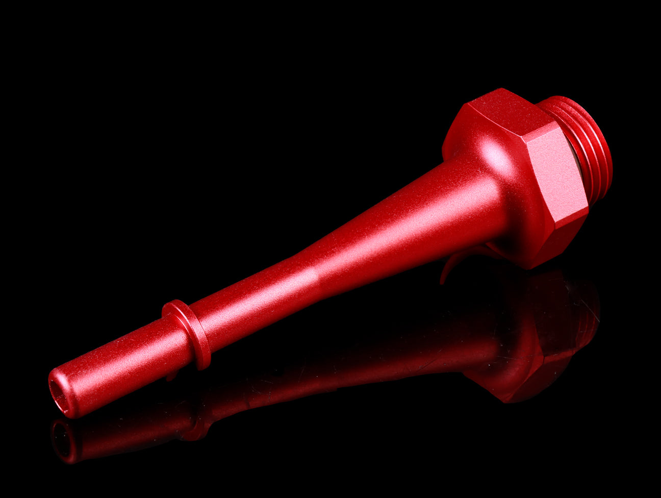 Mounted on the end of the fuel rail, this piece mates with the stock fuel line. It features an extended fitting to relax tension on the fuel line and help with clearance. Comes with an O-ring to prevent leaks. E85 Compatible.