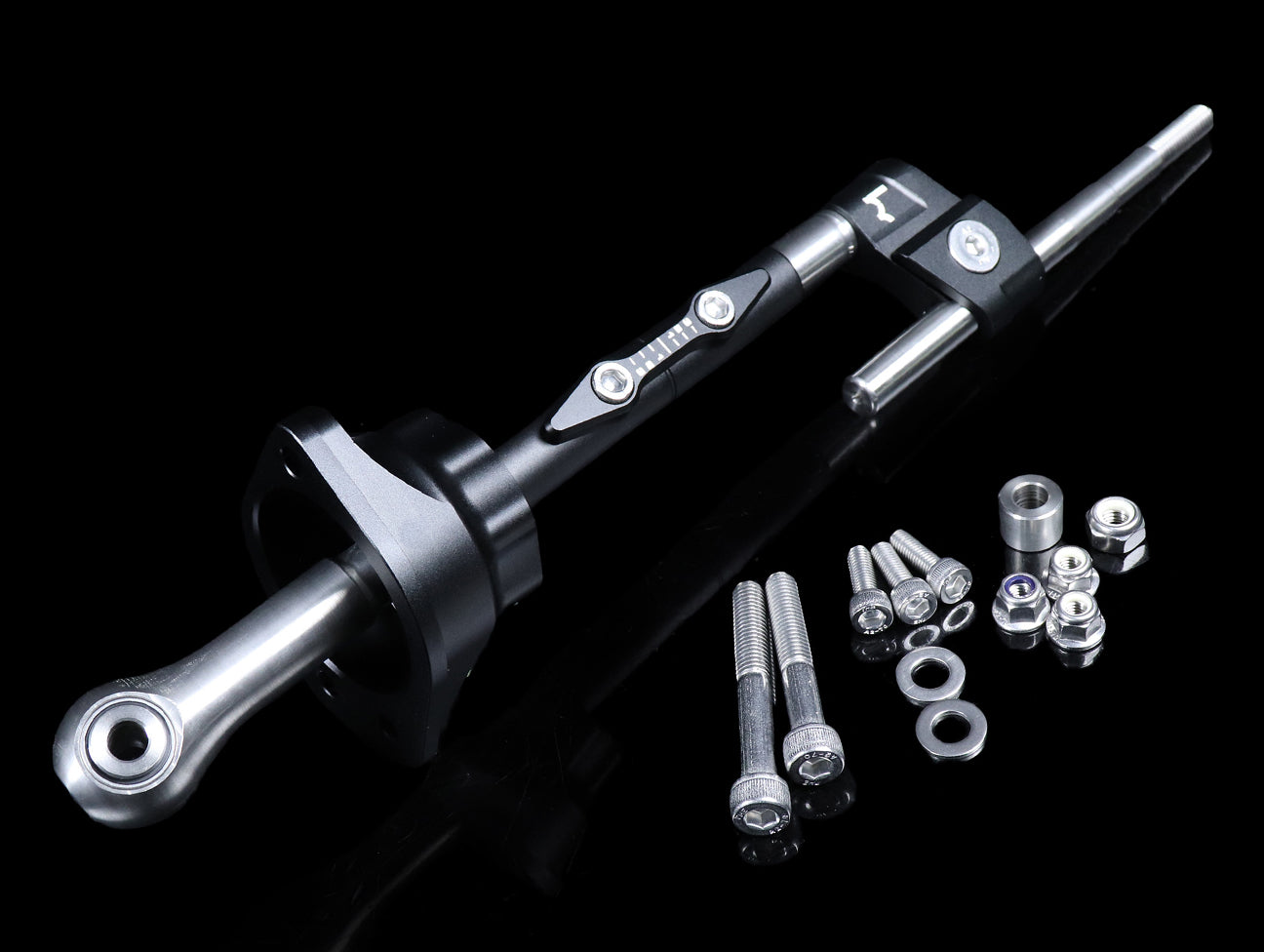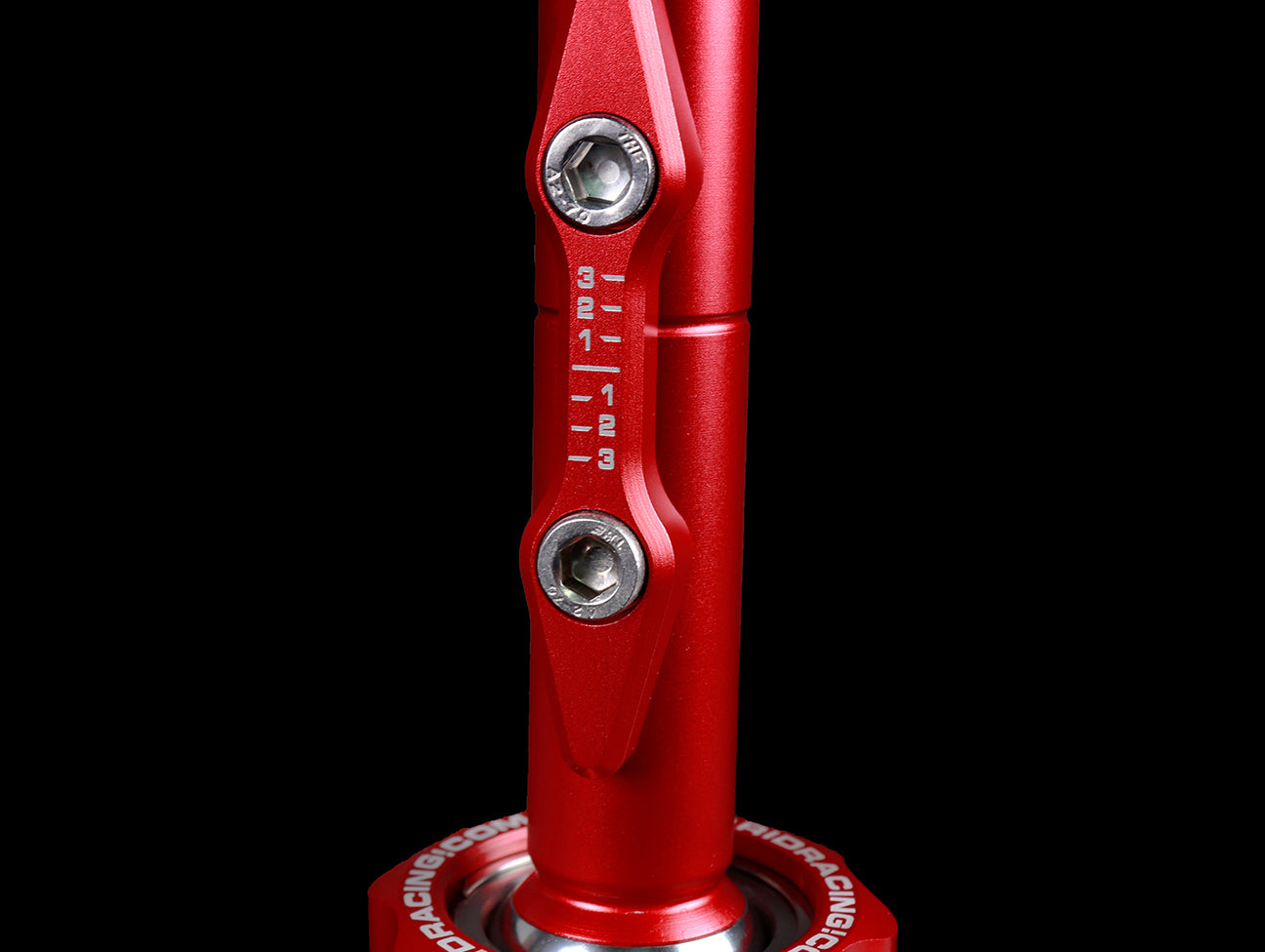 With HR's two-piece rod and sleeve design, you can adjust the throw from the comfort of your seat; no need to get under your car to make changes. The adjustments don't stop there. Dial in your knob position by raising and lowering the knob height up to two inches and rotating the offset a full 360 degrees. All of these adjustments add up to a fully customizable short shifter solution all done from inside your car.