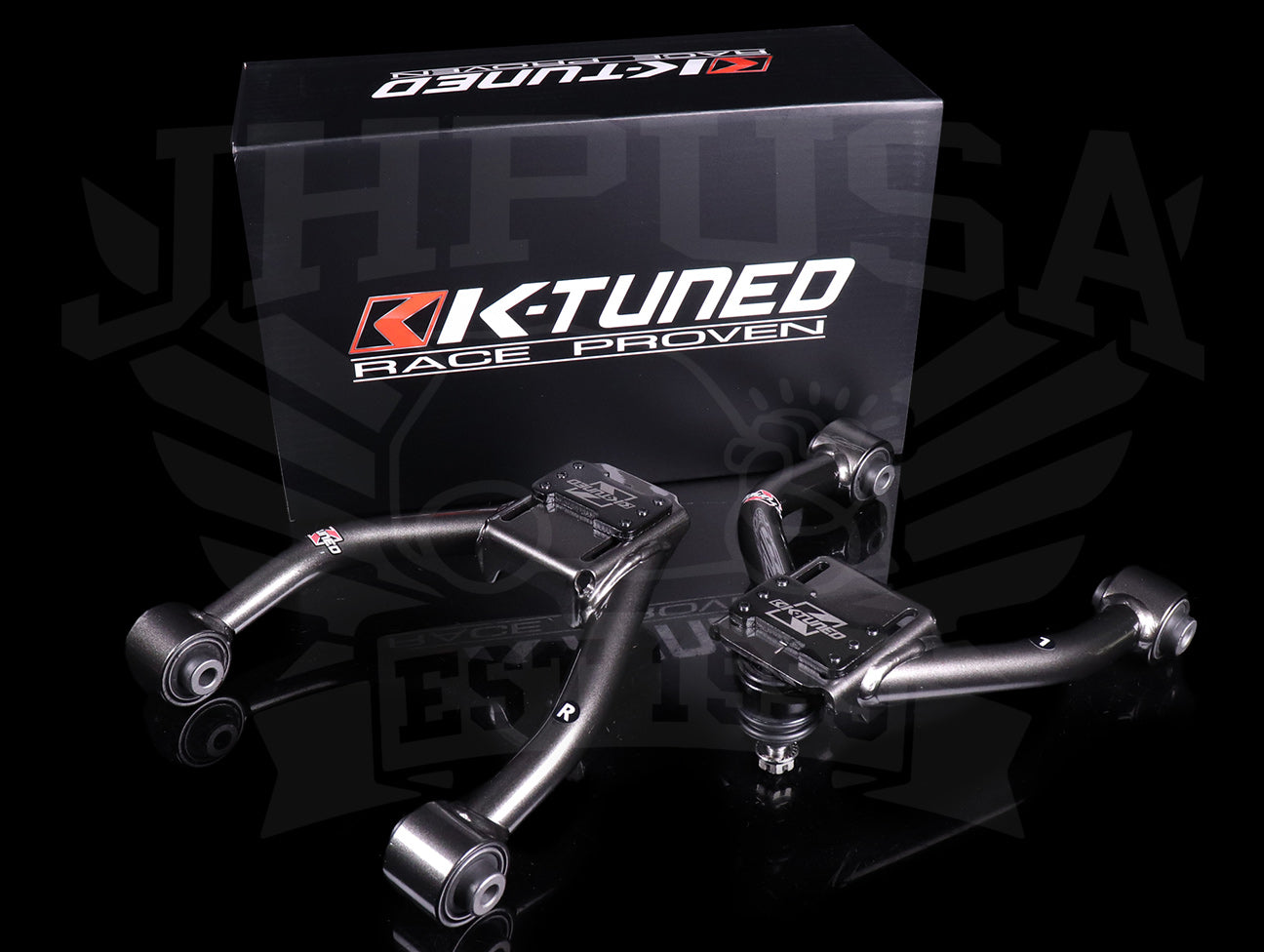 K-Tuned front camber kit (UCA) makes it easy to adjust camber and proper setup and align your car whether that is for street driving or racing.
