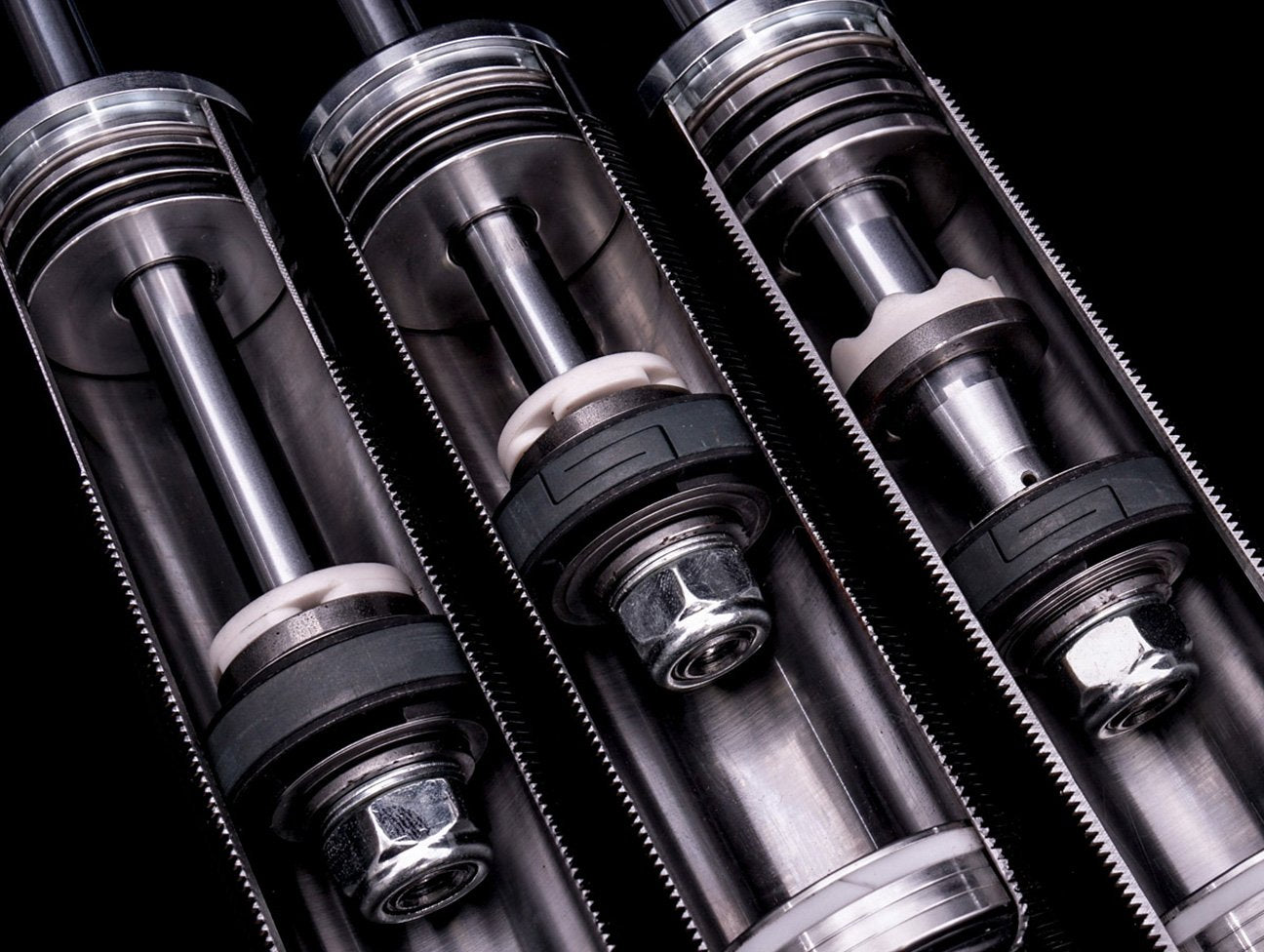 Next, K-Tuned pairs the struts with a high-tensile strength steel spring that is designed to last without sagging or premature wear. Springs are tested to ensure there is no coil bind and full range of motion. The high quality strut and dampening allows us to use the proper spring rates needed for each setup that will complement the adjustable dampening rates. Each spring is mounted on adjustable aluminum perches that can be used to adjust preload and travel. Dual bearing and incorporated washer are in place to keep the system free moving especially on McPherson style struts.