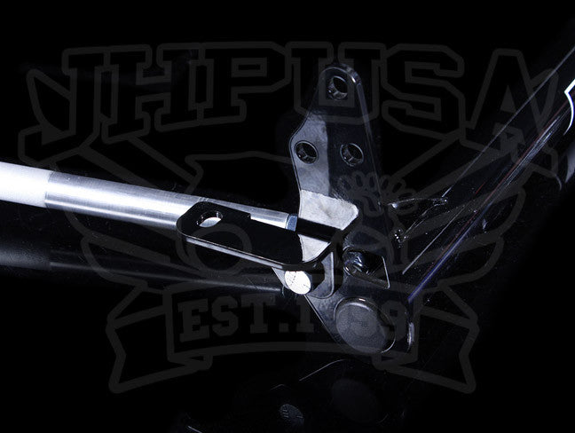 Components are CNC machined and laser cut from 1/4" steel and finished with a durable powder coating. The radius arms are thick walled polished aluminum to ensure a strong and solid arm to prevent from fatigue and breakage. With the versatility of the radius arms, fitment is perfect every time and adjust-ability is only a twist away. The Main bar is made from Chromoly and the end plates from the best high-grade steel available.