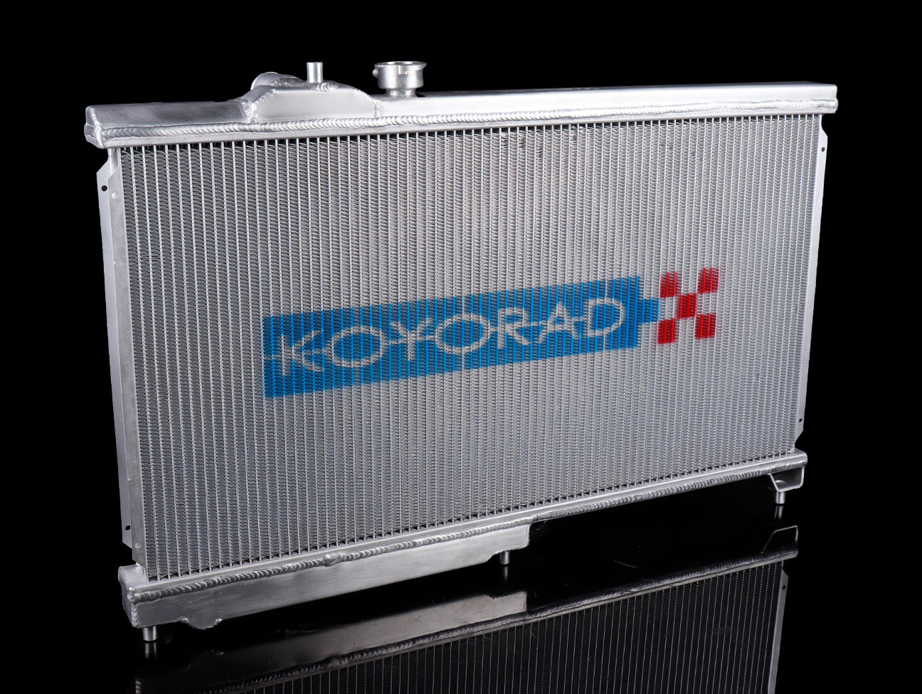 Koyorad continues to improve upon cooling performance for EG and EK chassis Honda Civics and is proud to announce a brand new full-length aluminum racing radiator for these “golden era” favorites. This application was taken from the Koyorad Japan catalog, proven for nearly a decade in Japanese N1 and Honda VTEC One Make Racing and is now available in North America. Designed for the serious race car, this radiator will not fit vehicles equipped with air conditioning (AC). By utilizing the space for the AC condenser, the radiator core surface could be increased by over 100%, which boosts the cooling system’s heat capacity and endurance in extreme conditions. The original radiator fan shroud and OEM DOHC radiator hoses can be used, requiring no modifications for installation. Users may install an aftermarket coolant temperature gauge with the optional 1/8PT sensor port, conveniently located directly on the upper radiator tank which eliminates the purchase of a sensor hose adapter. Koyorad’s advanced engineering and design, proficiency in furnace brazing, and triple pressure testing for quality has earned their excellent reputation in performance cooling worldwide.