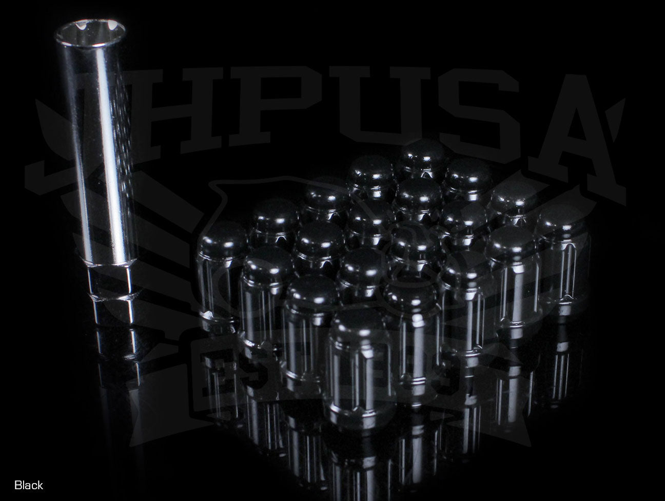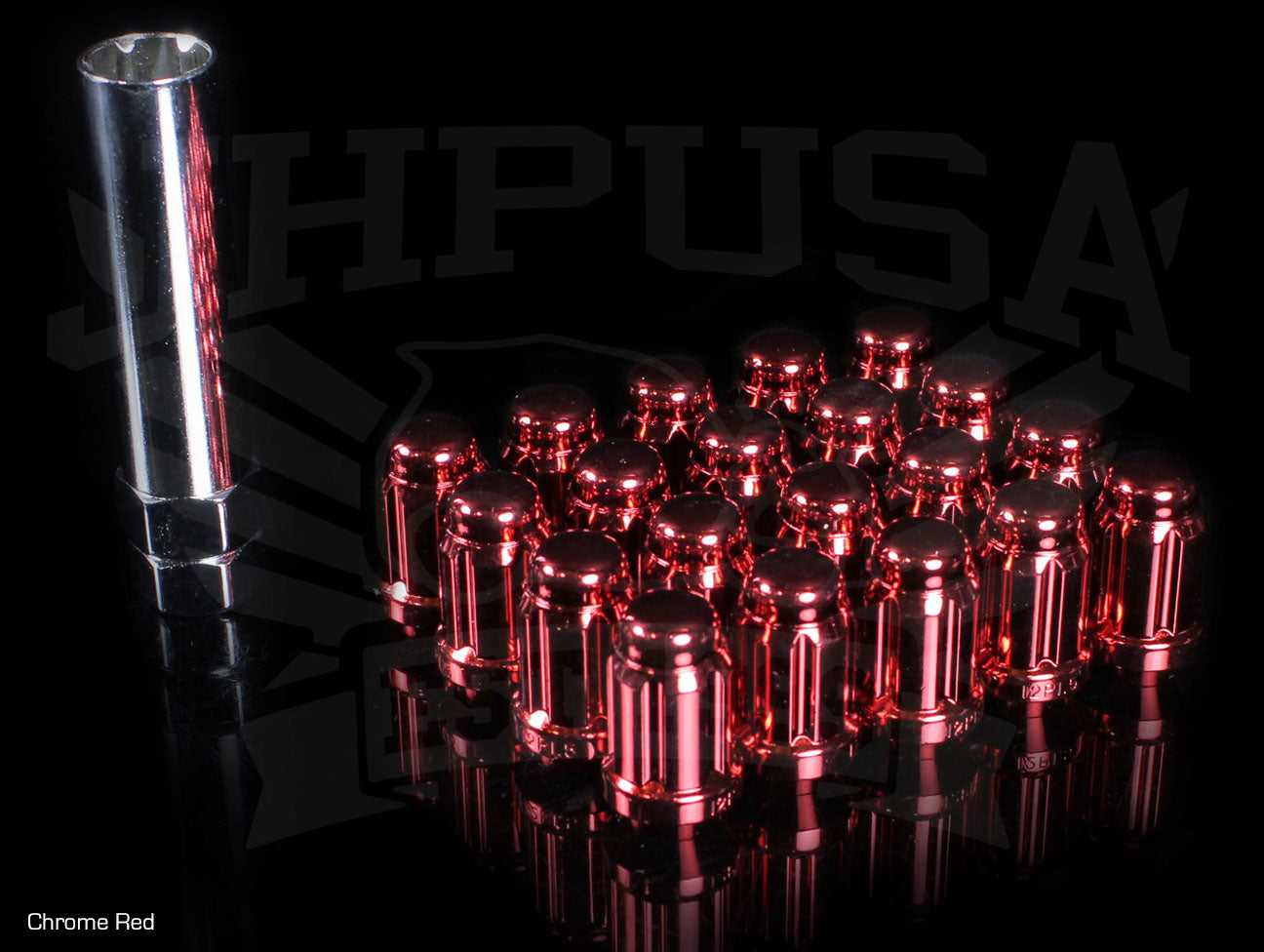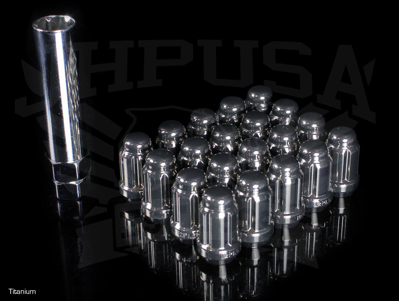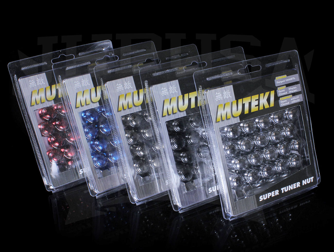 High Quality wheel lugs for performance driving. Strong, lightweight, and compact size to enhance your driving experience! Lightweight construction at 36g which is half of the weight of typical nuts that weighs around 60g. Compact size and thin shape (20mm diameter x 34mm height) to fit most tuner wheels with small lug holes. Muteki super tuner nuts are made in Japan of cold-forged 1008steel which enables the nut to be made smaller and lighter, but strength to match or exceed other standard nut specs.