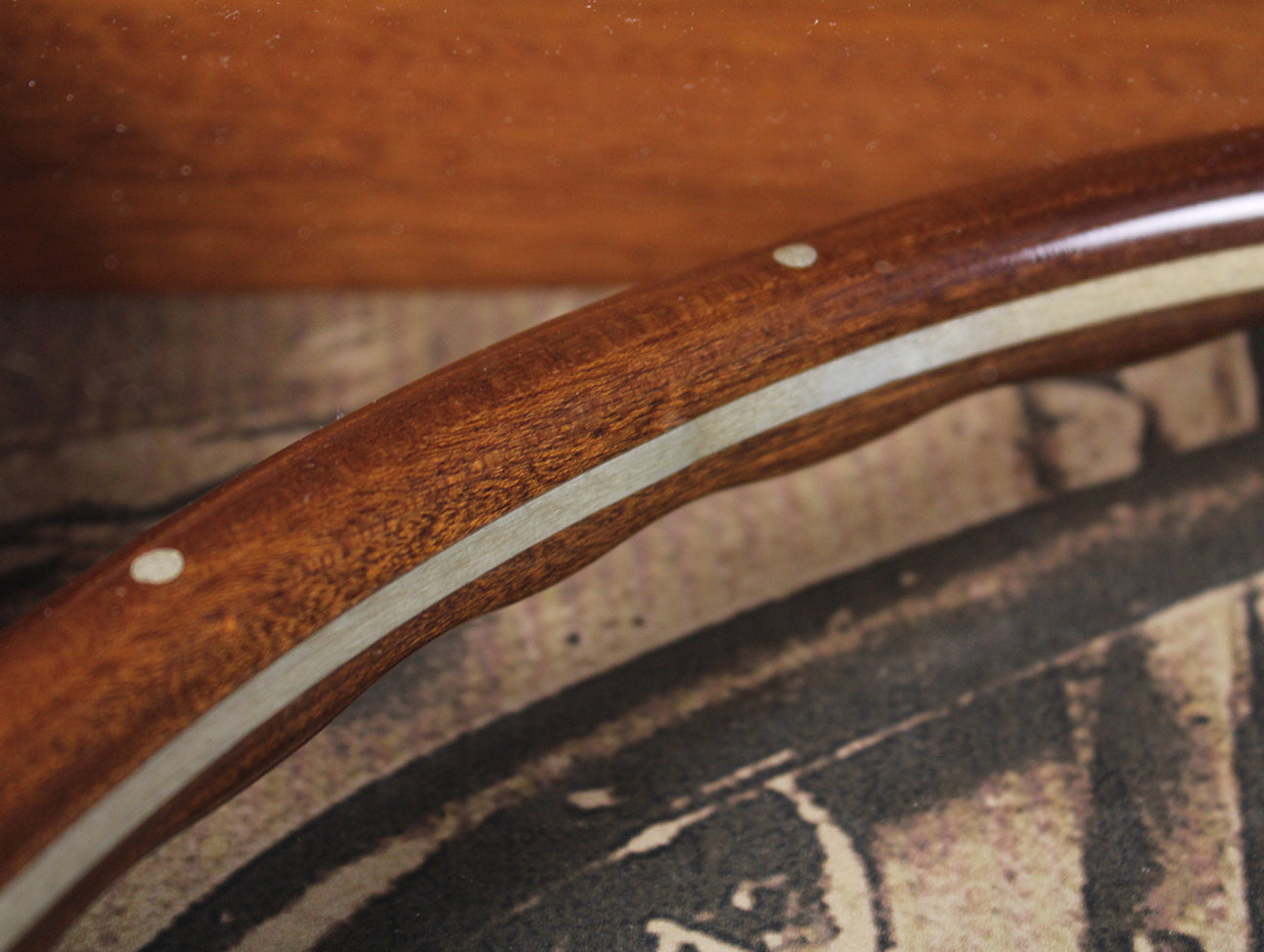 Mahogany wood grip, glossy finish, and aluminum spokes with "E.Nardi" signature.