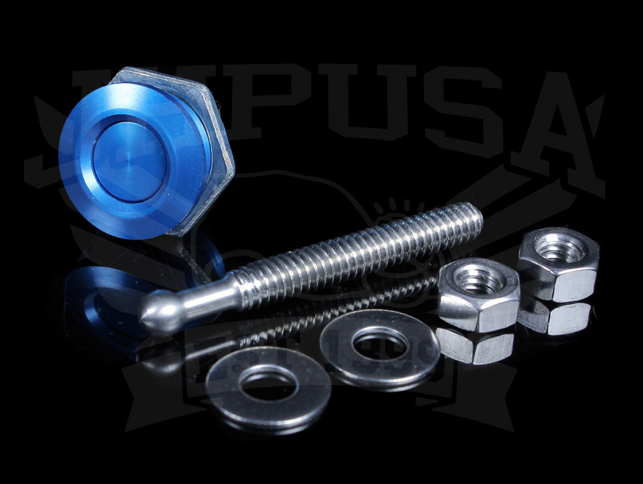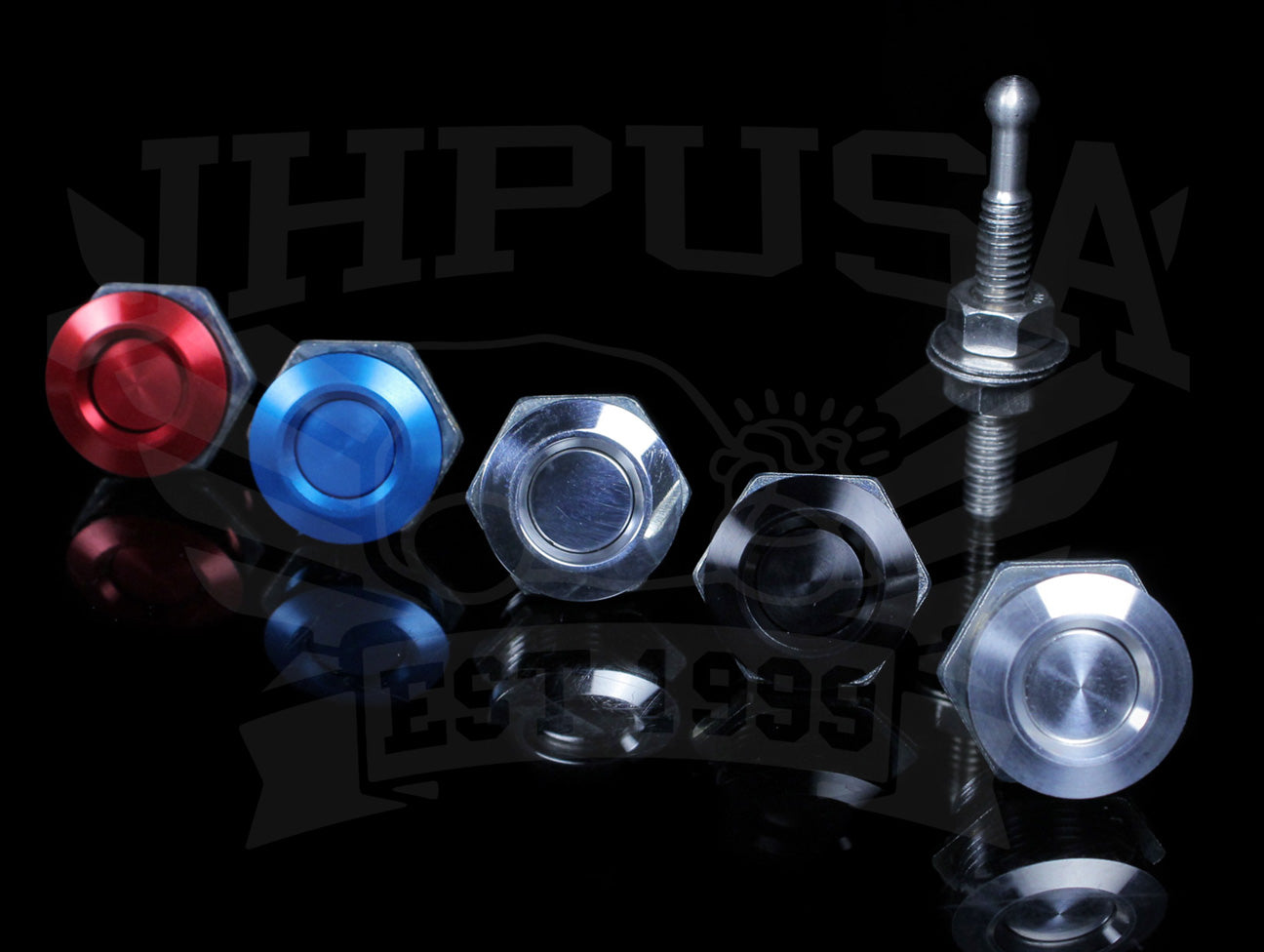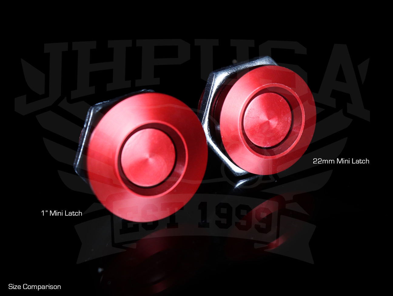 The 1" Mini Latches features a smaller 25.4mm upper diameter vs. the regular Mini Latches which are 1.25" (31.75mm) in upper diameter, about the size of a quarter, so they are very compact and neat looking. They are able to withstand the the pulling force of 150lbs before failure and have been approved by the NHRA for use in racing applications. With just a push of a button, the Quick-Latch Mini is unlatched. The button stays in the down position until re-latched, and then the button pops back up. No more tools that scratch or get misplaced.