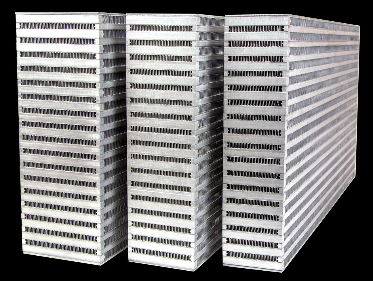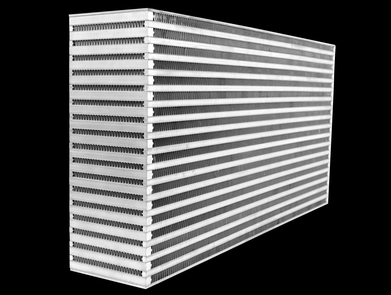 SpeedFactory Air-to-Air Intercooler Cores feature bar and plate core construction with a very specific staggered fin combination that is engineered to achieve maximum cooling efficiency while minimizing pressure drop. The overall strength and durability of our intercooler core designs makes them capable of efficiently handling even the most extreme, high boost level racing applications. Deliver significantly cooler, denser air to your engine with a performance proven SpeedFactory Racing Intercooler Core.