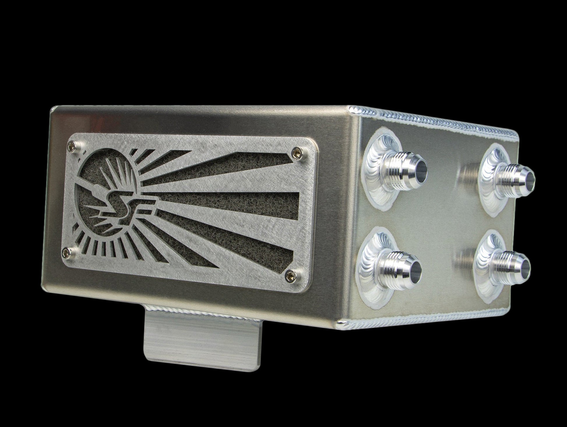 Our catch cans are CAD designed and CNC press punched using state of the art technology. The catch can and all billet fittings are professionally TIG welded to top off that ultra clean look, and each unit ships with an aluminum mounting bracket attached for ease of installation.
