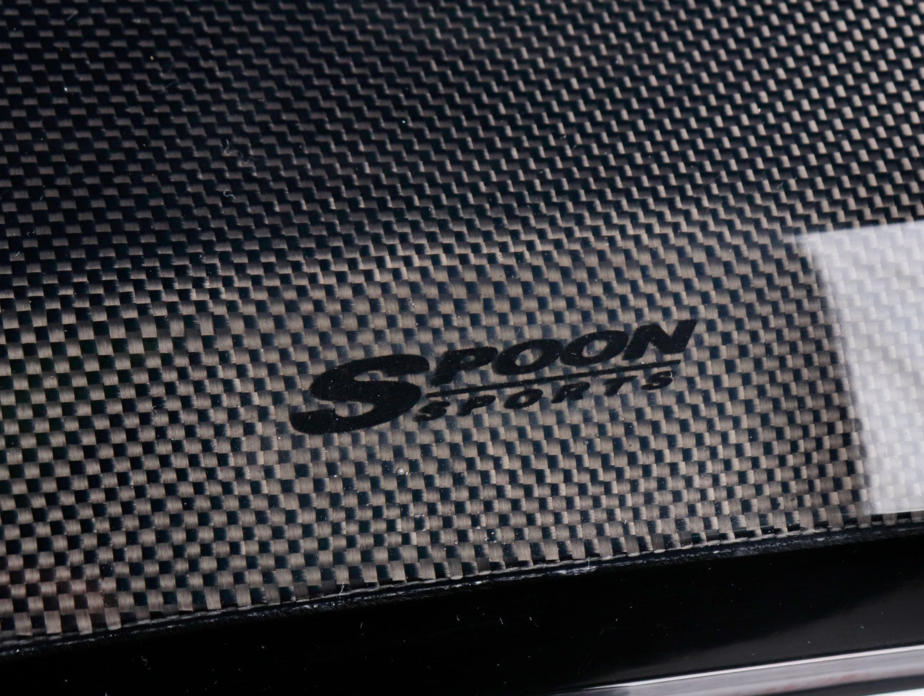 The Spoon carbon roof spoiler is hand-laid carbon fiber for excellent craftsmanship, fit, and finish. The rear duckbill spoiler windscreen improves aerodynamics and vehicle stability.