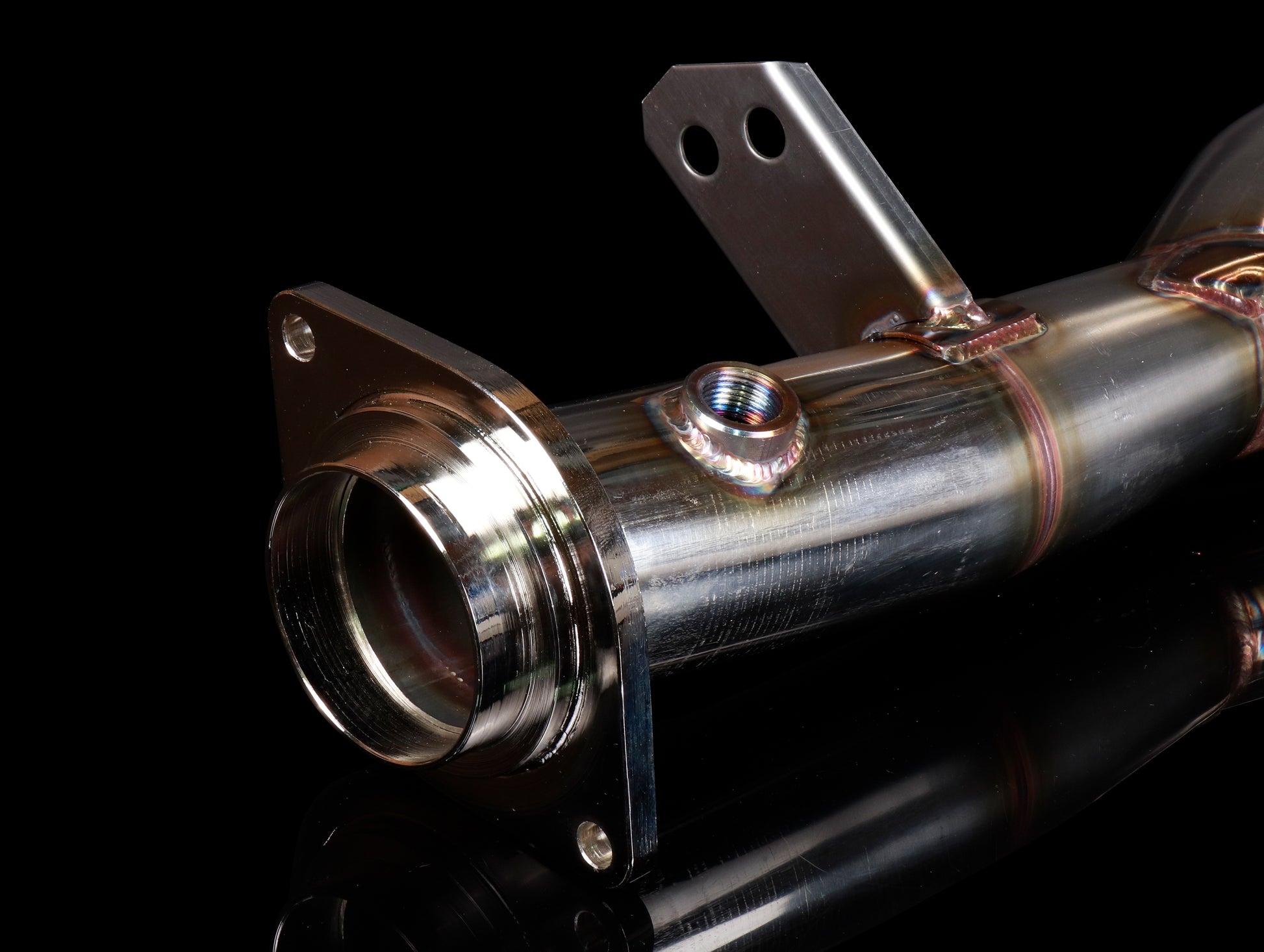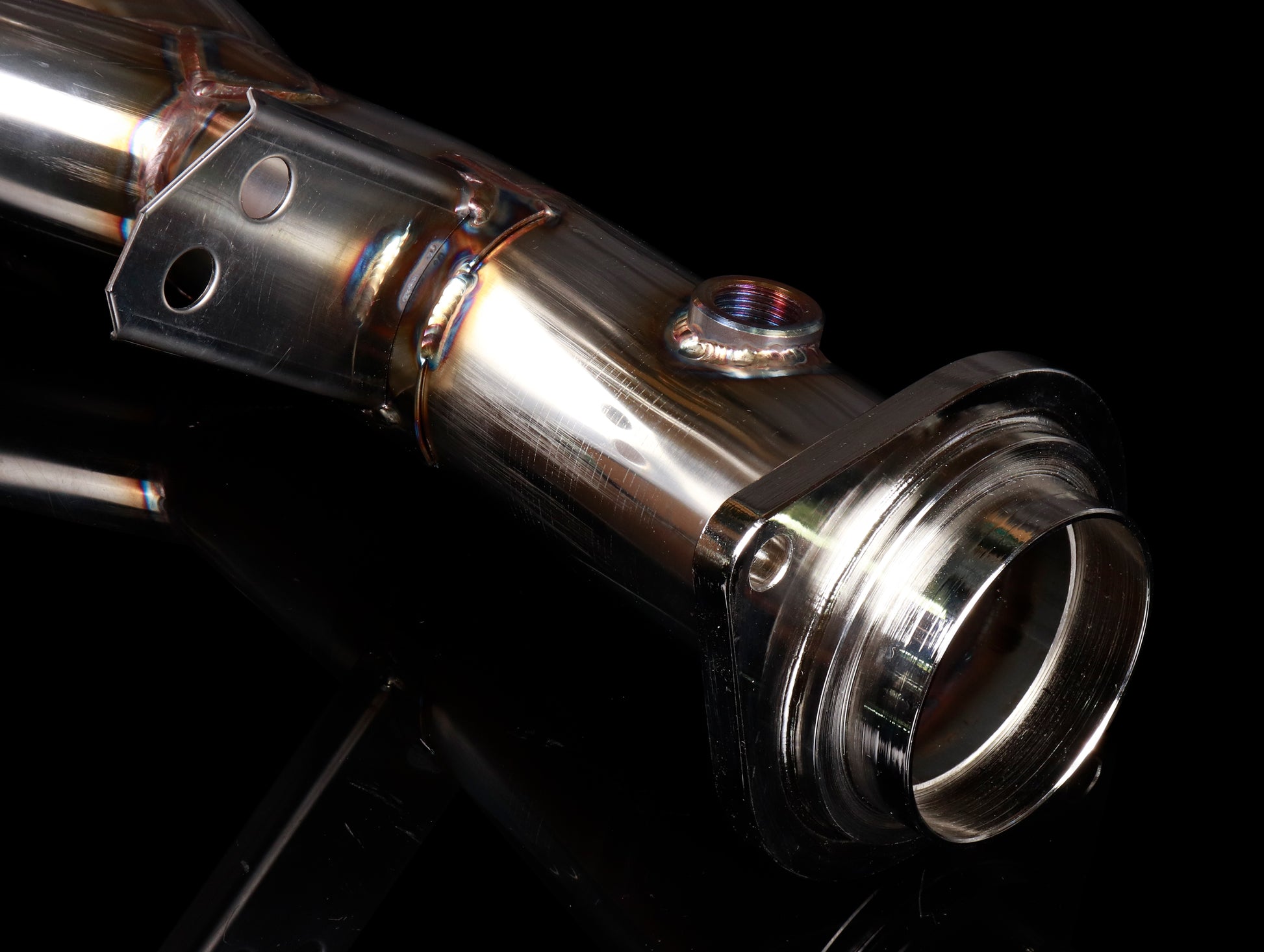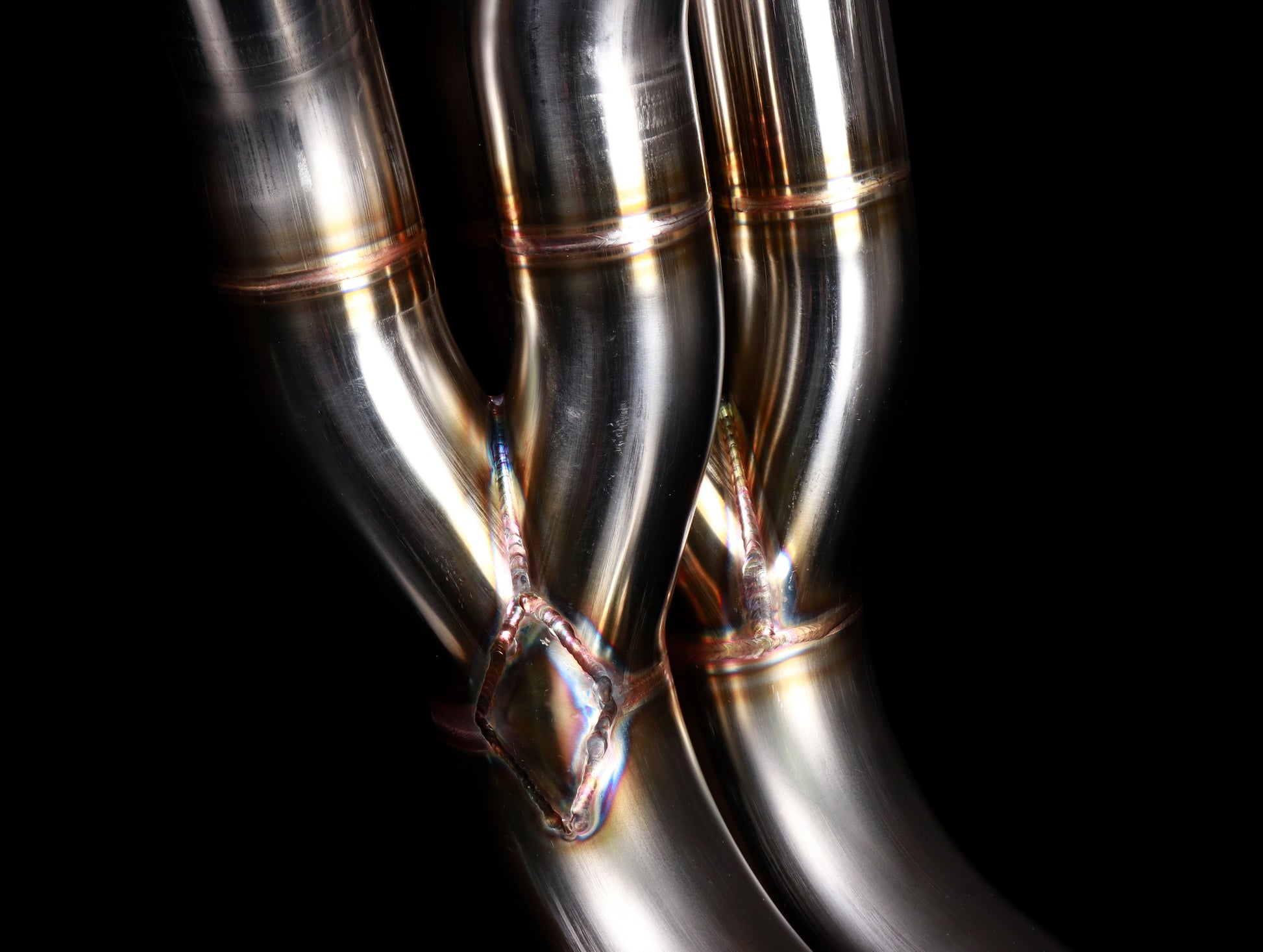 A bench tested (Equal length 4-2-1+ Taper) Design. Taper design is adopted from feedback from both racing and dyno bench testing. Race type high flow junction. Each section of the manifold has optimized pipe lengths, diameters,and angles as well as high flow junctions. Made of light weight stainless steel for both durability and looks. Flange manufactured by high precision CNC machine. (exhaust port size is ø38mm).