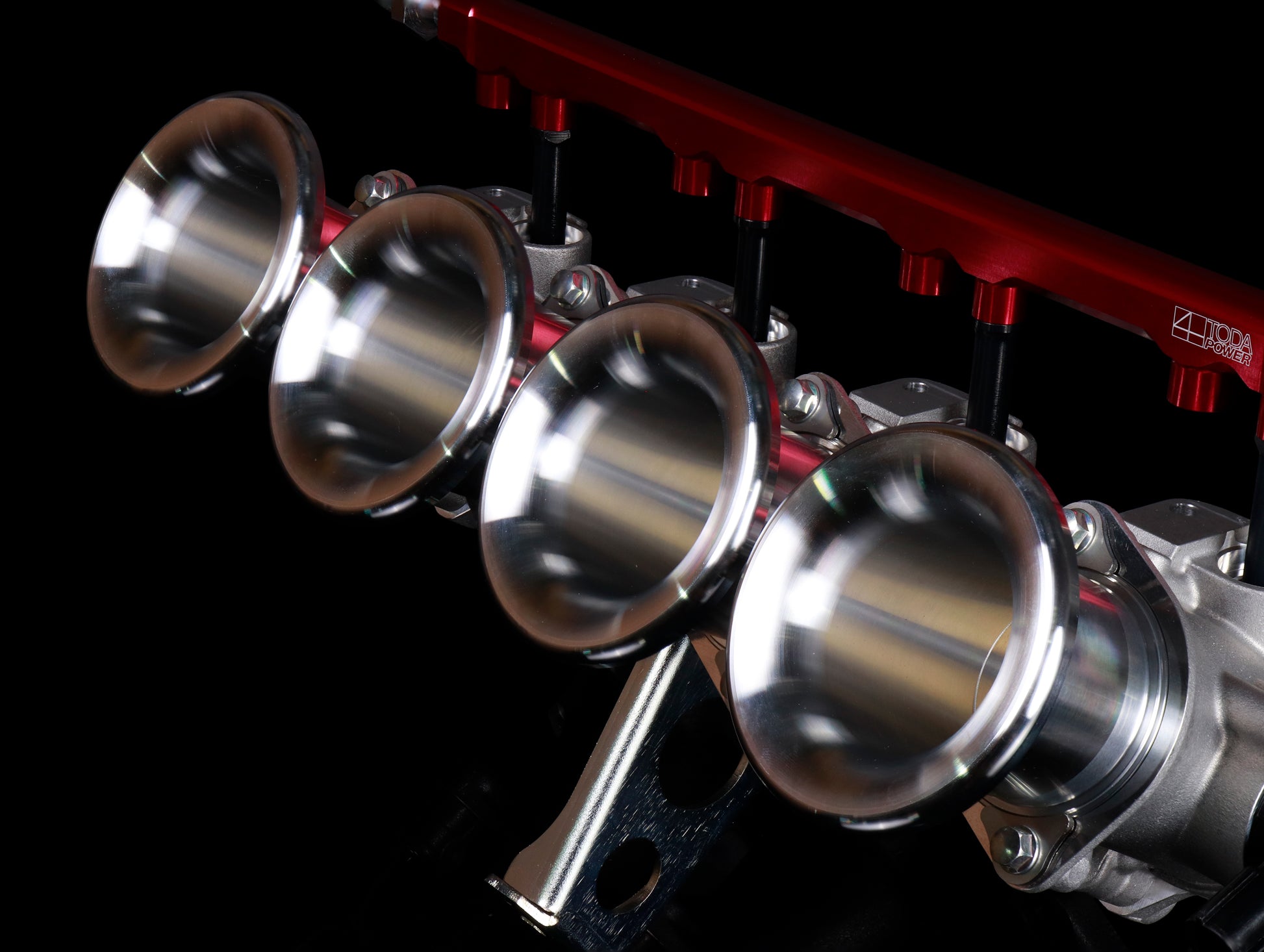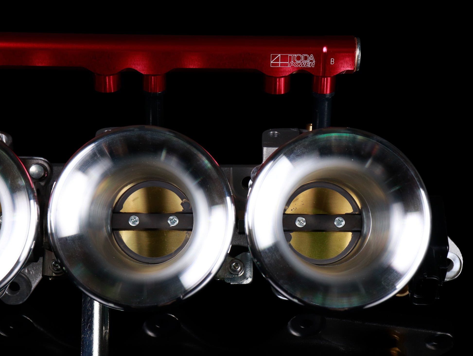 TODA Sports Injection Kit improves engine response and power output, through the use of individual throttle body per cylinder. Not only for power improvement at high rev, TODA sports injection is a fine tuning of the injection system which also brings benefits of power gain in low to mid ranges and smooth idling compared to single throttle system (ECU setting required).