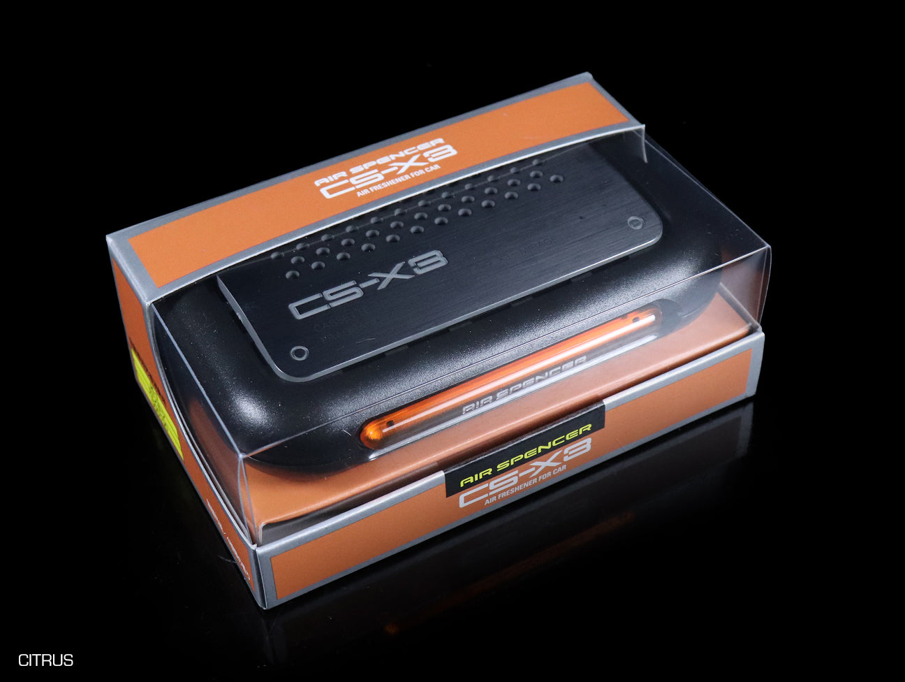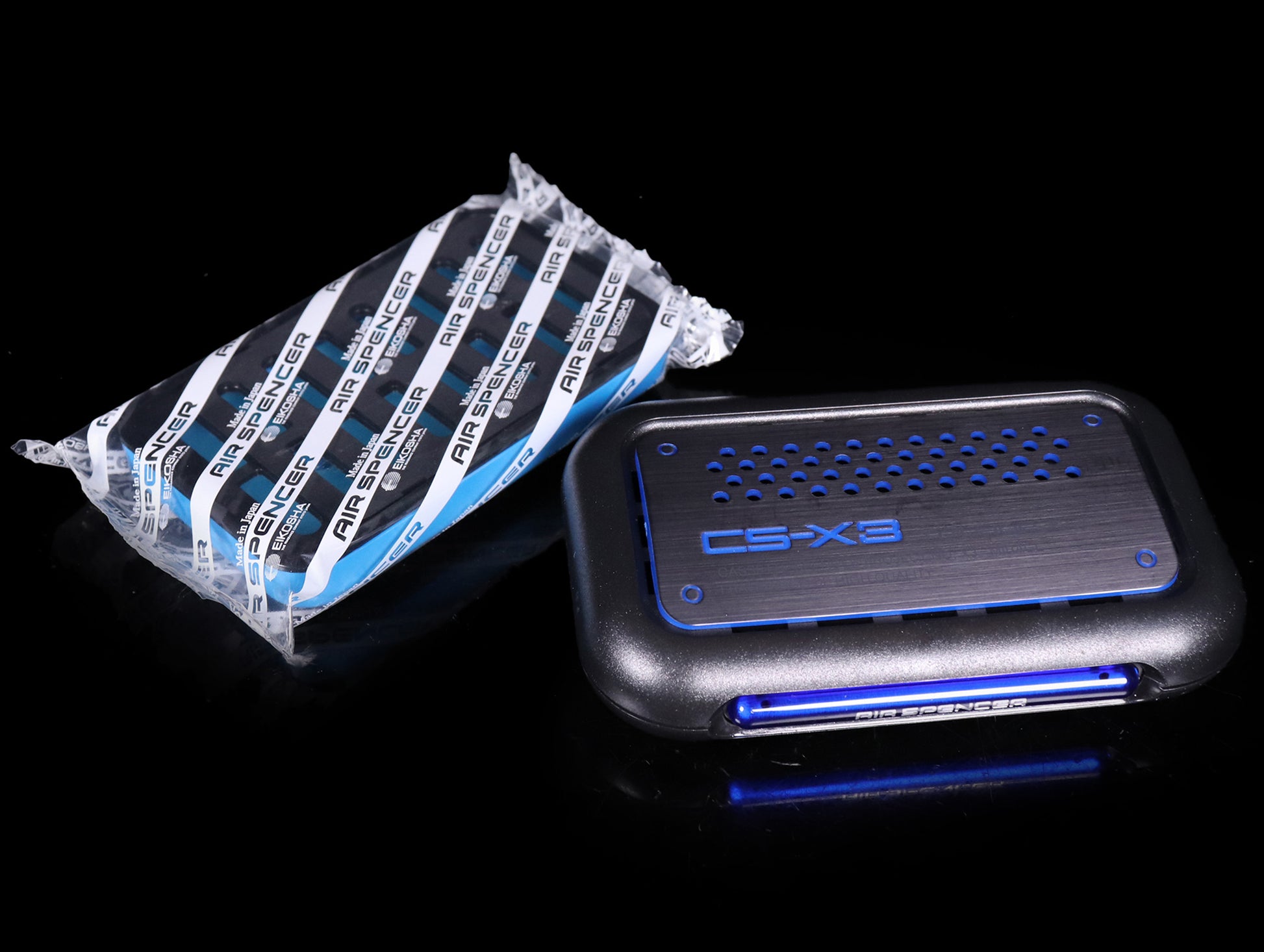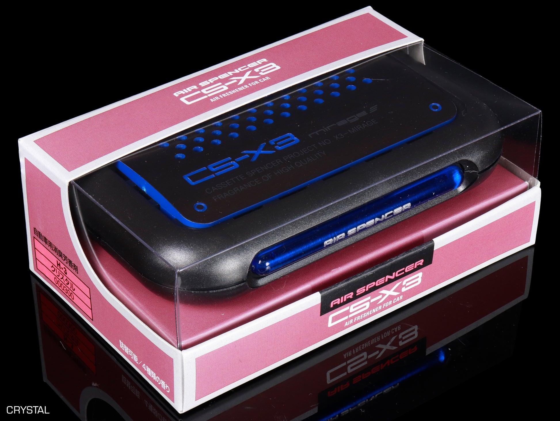 The CS-X3 Air Spencer air freshener is one of the sweetest and unusual addictive scents to hit the US market from Japan. The outer cassette style casing is made from high quality plastic with a smooth sleek finish, topped with a chrome CS-X3 emblem. The inner scent cartridge is refillable cassette featuring a sliding louver to adjust the strength of the scent.