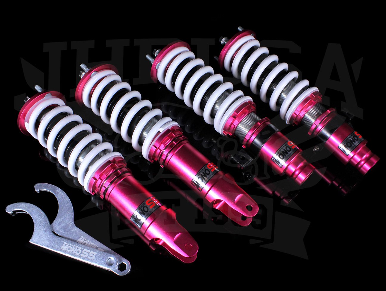 Godspeed Mono-SS coilover suspension for Honda / Acura vehicle applications is a new line from Godspeed targeted at the budget consumer demographic. Mono-SS coilovers feature a mono-tube design which provides good performance and reliability along with adjustable ride height and 16-way damper/rebound settings. Fine tuning the way you want the car to ride and site hasn't been easier!