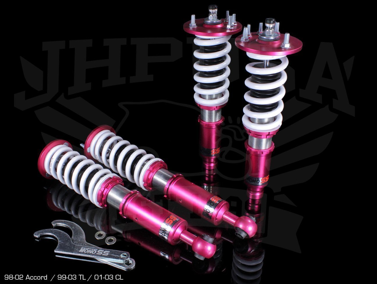 Godspeed Mono-SS coilover suspension for Honda / Acura vehicle applications is a new line from Godspeed targeted at the budget consumer demographic. Mono-SS coilovers feature a mono-tube design which provides good performance and reliability along with adjustable ride height and 16-way damper/rebound settings. Fine tuning the way you want the car to ride and site hasn't been easier!