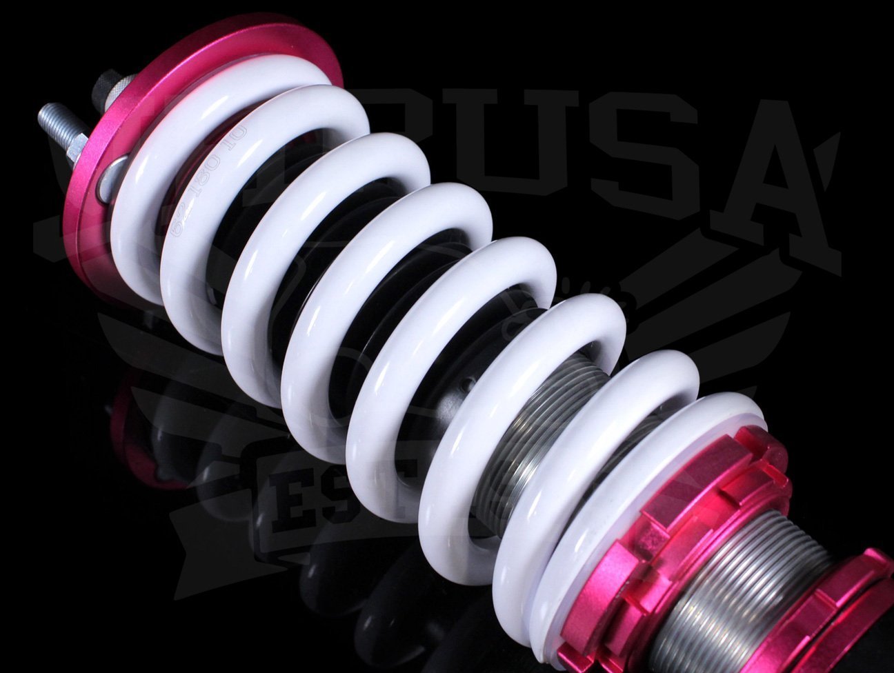 The dampers have 16 levels of settings from soft to stiff which allows you to fine tune the stiffness of the ride. The polyurethane bushings finish off the suspension by allowing smooth and quiet operation for a better and more solid driving experience. Ride height and pre-load are separate, so this allows you to adjust ride height without changing how it rides nor lose shock travel. Therefore you can go low and ride handling does not suffer.