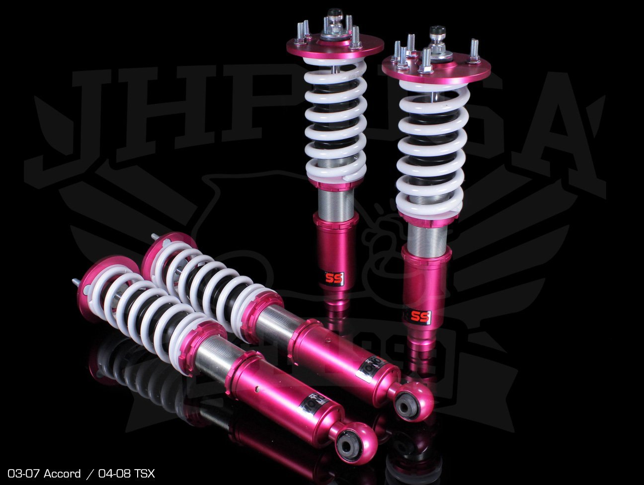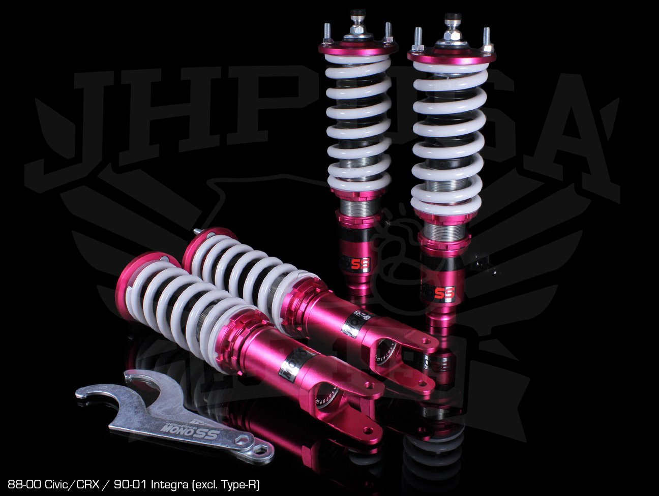 Godspeed Mono-SS coilover suspension for Honda / Acura vehicle applications is a new line from Godspeed targeted at the budget consumer demographic. Mono-SS coilovers feature a mono-tube design which provides good performance and reliability along with adjustable ride height and 16-way damper/rebound settings. Fine tuning the way you want the car to ride and site hasn't been easier!