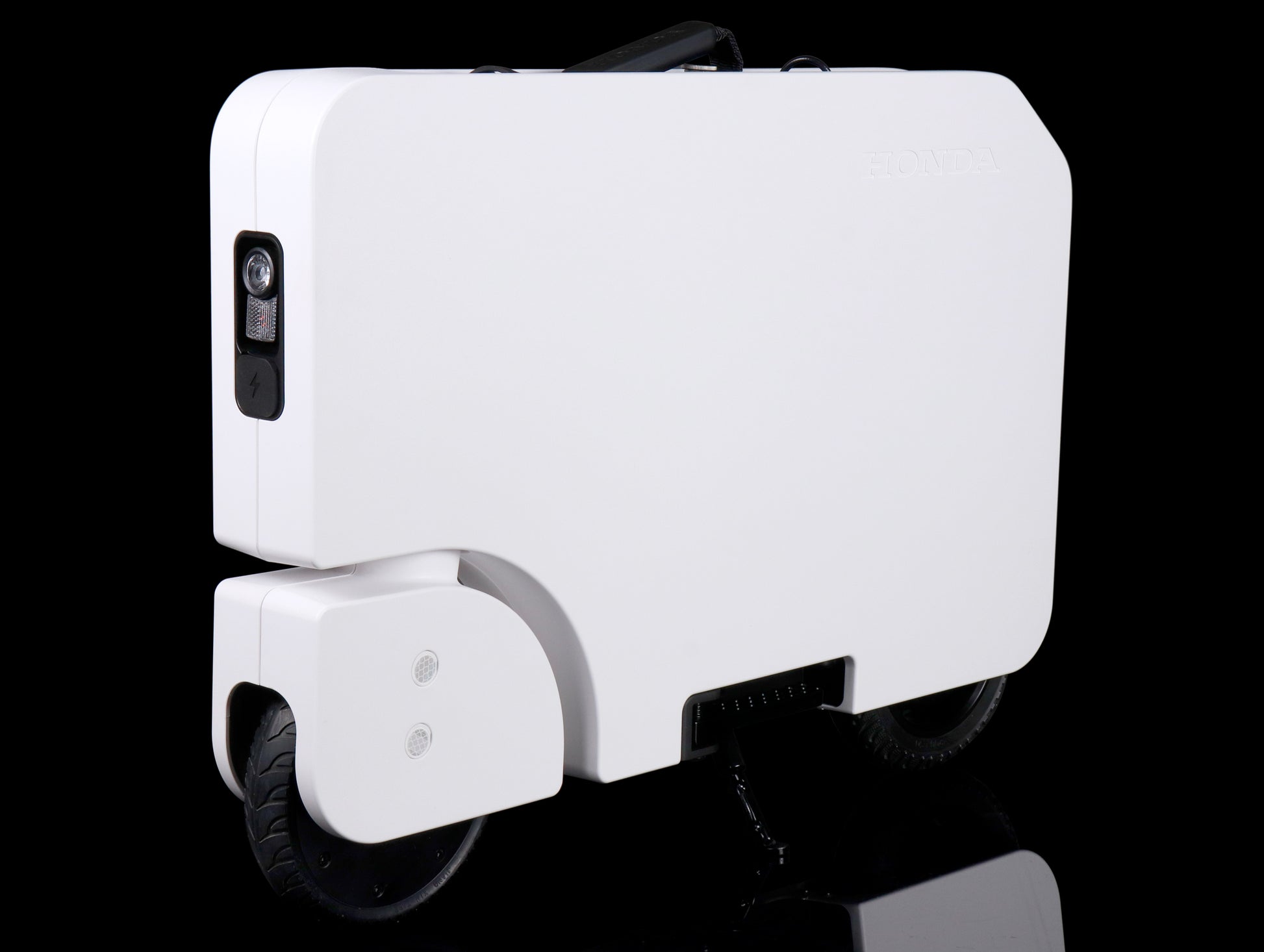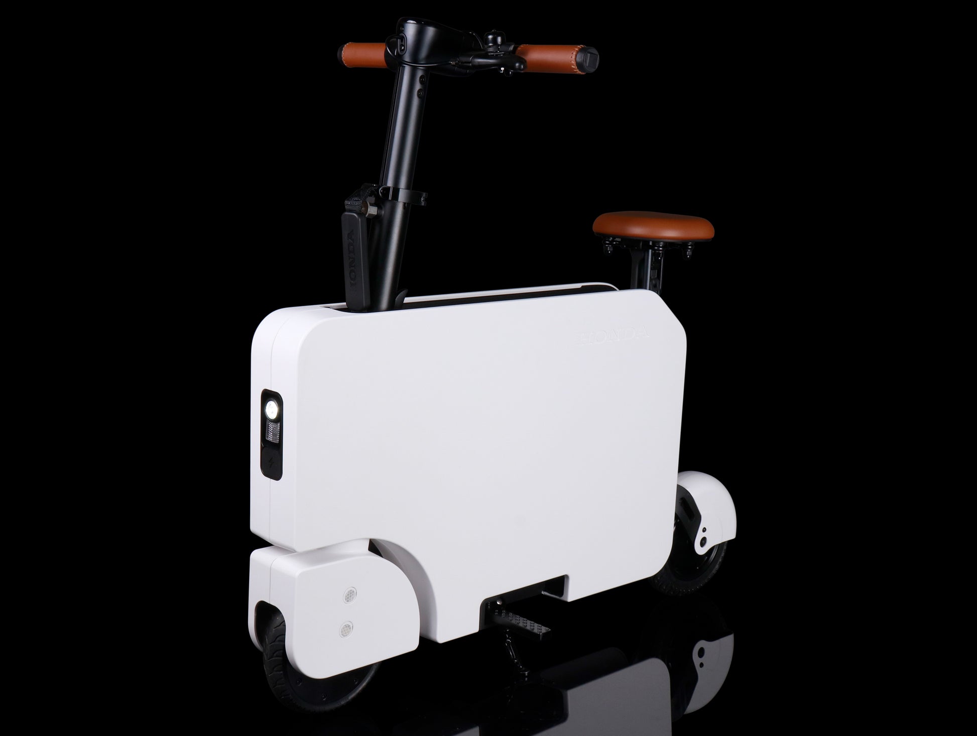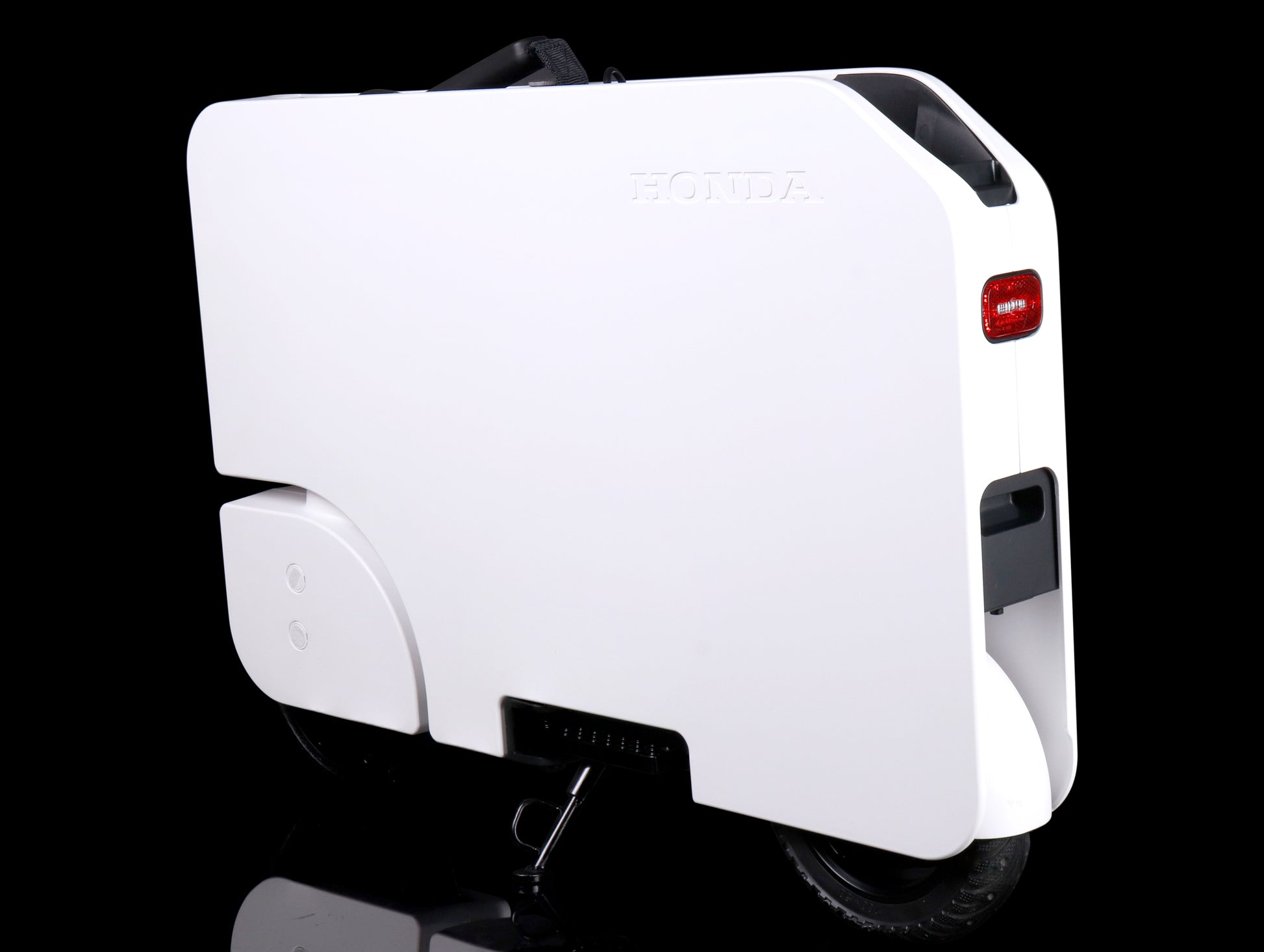 Motocompacto was designed and developed by Honda engineers in Ohio and California as an innovative approach to personal electric transportation that has earned 32 patents. Uniquely foldable, Motocompacto quickly transforms into its own compact, light and stackable carrying case that's easy to take along in a vehicle, on public transportation or store in tight places.