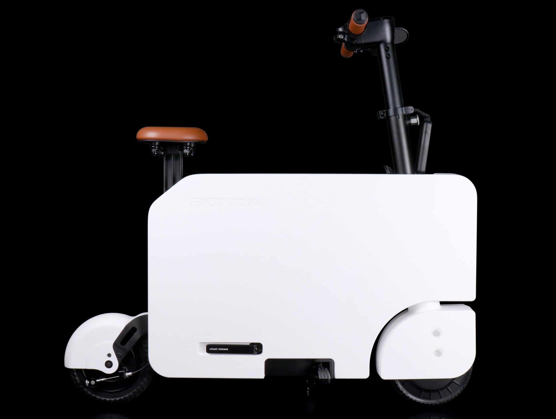 A fresh take on e-scooters that was inspired by the Honda Motocompo of the early '80s, the all-new Honda Motocompacto redefines affordable all-electric personal transportation with sleek and simple styling and an innovative, ultra-compact foldable design. The zero-emissions Motocompacto is designed for the modern realities of urban mobility, providing riders with an easy and fun-to-ride alternative transport that greatly reduces their carbon footprint while offering great convenience. With a maximum speed of 15 mph and zero-emissions range of up to 12 miles, Motocompacto can be fully charged in just 3.5 hours in both the folded and ready-to-ride configuration using a common 110 v outlet.