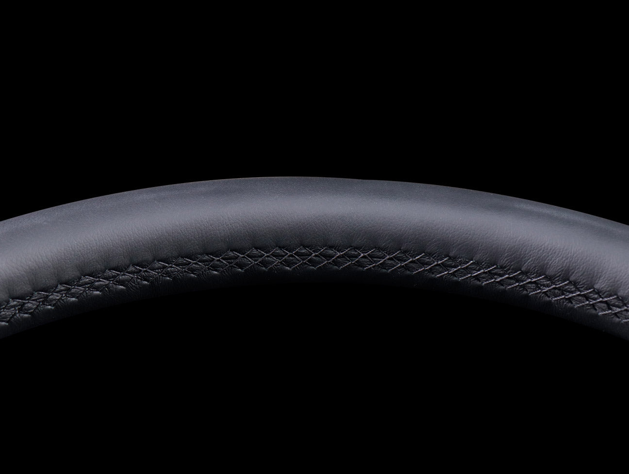 The Nardi Gara 3/3 steering wheel features black leather hand grips, black stitching, leather black spokes.