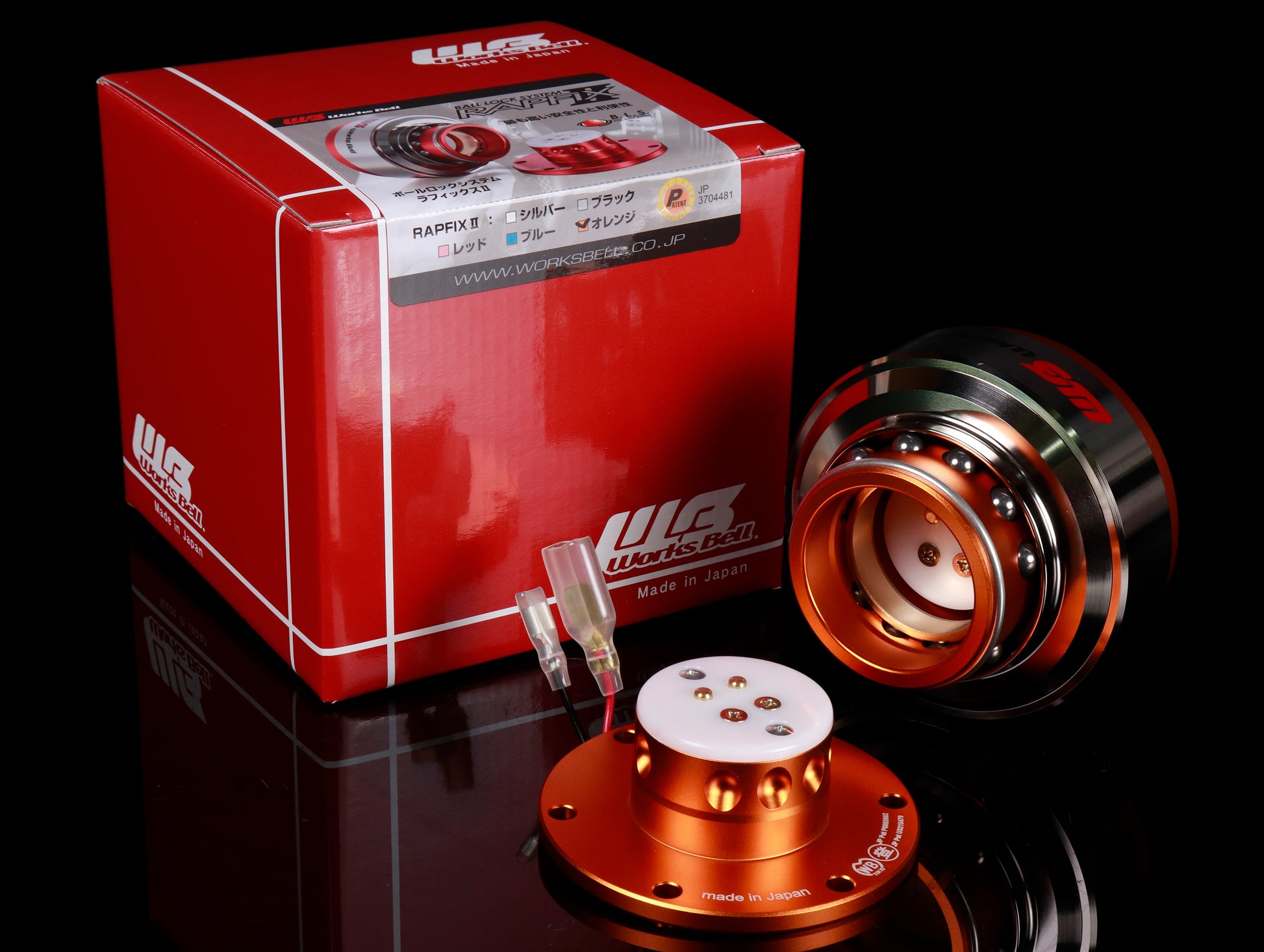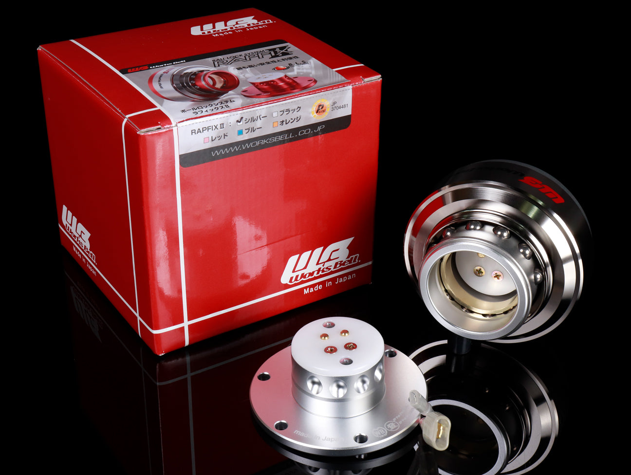 Works Bell is Japan's premier interior performance company, well known for their Rapfix series of quick releases. The Rapfix II uses a patented ball locking design which will not come off during driving but allows for quick and easy removal. No play whatsoever, this is the ORIGINAL! The piece is a cold forged aluminum body, which is track tested and proven by the top Japanese race drivers. Makes it easier to get in and out of your car, and also provides added security when parked.